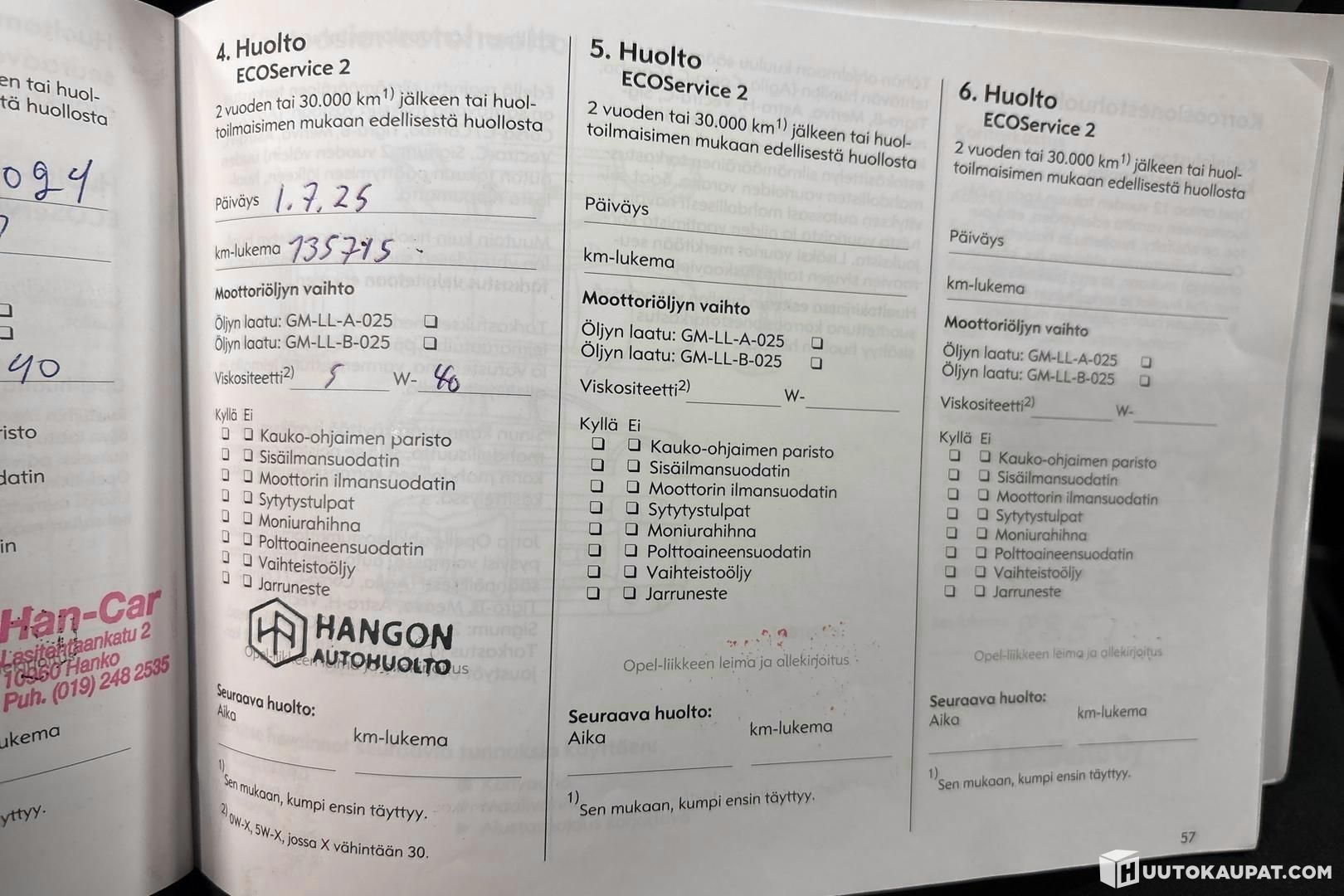 Täysi huoltokirja kertoo säännöllisestä ylläpidosta, eikä huolia ole jätetty seuraavalle omistajalle – jakohihna on vaihdettu tänä vuonna. .