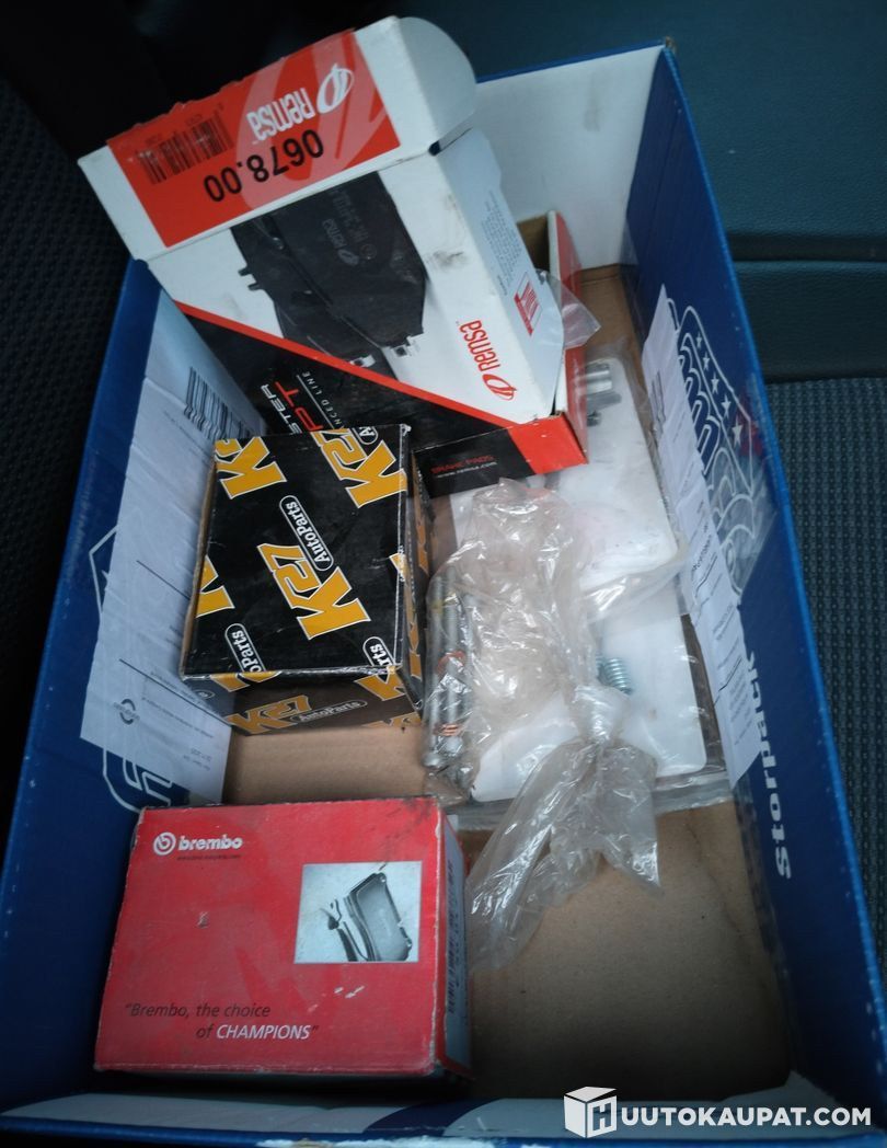 Mukaan saa uusia jarrupaloja. Uusia Jarrujen asennusosia. Toiset käytetyt etujarrusatulat sekä uudet suuttimien pohjatiivisteet sekä pultit.