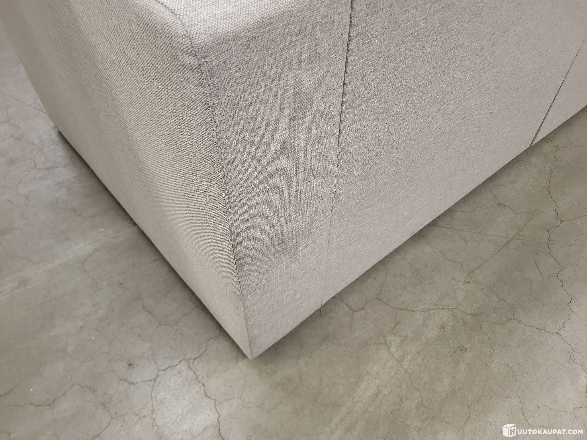 Sohvassa kuljetuksessa tullutta likaa. Moduulien kiinnityskohta ollut väärässä kohdassa jota korotettu puurimoilla.