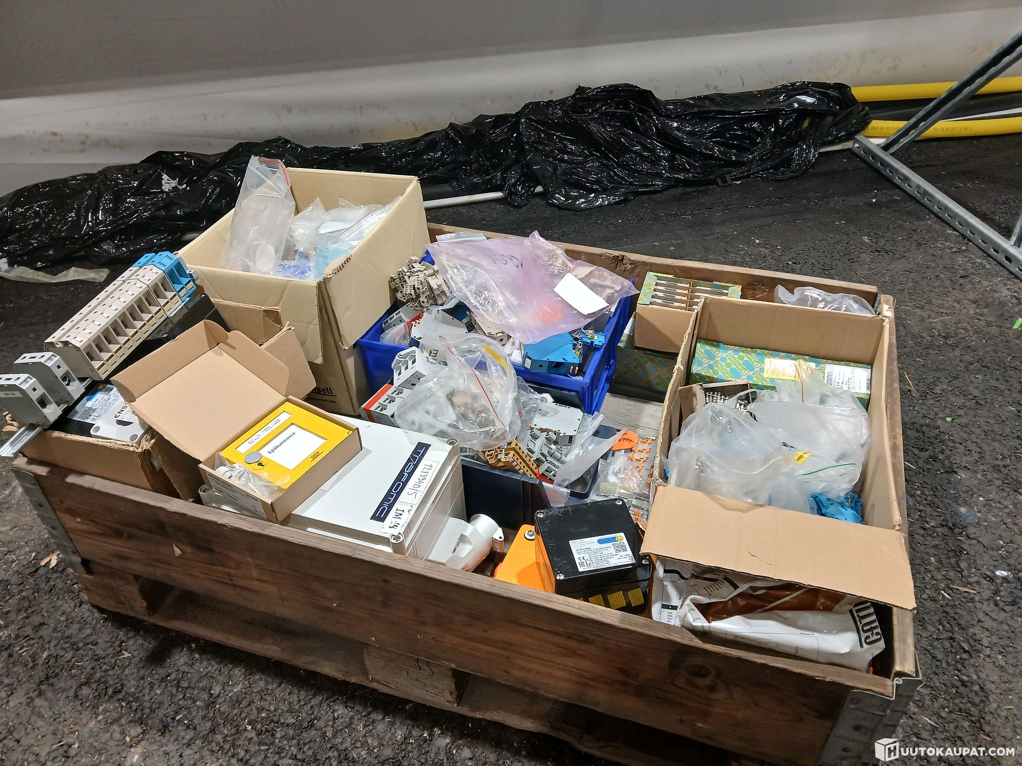 Erä käyttämättömiä sähköasennustarvikeita, 1 EUR-lava.