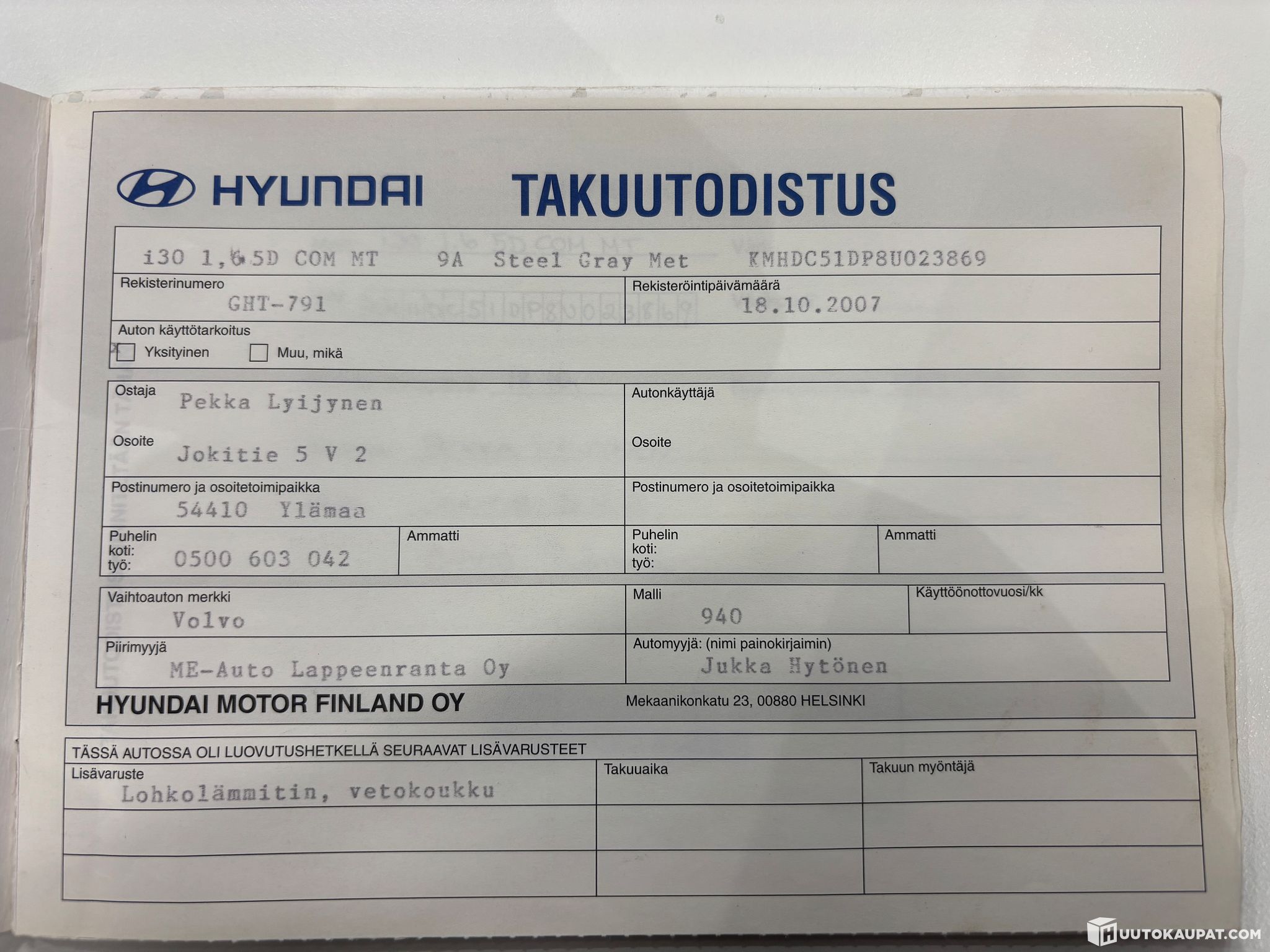 Autoliike Kymppi Plus Oy ilmoittaa, Huutokaupat.com myy