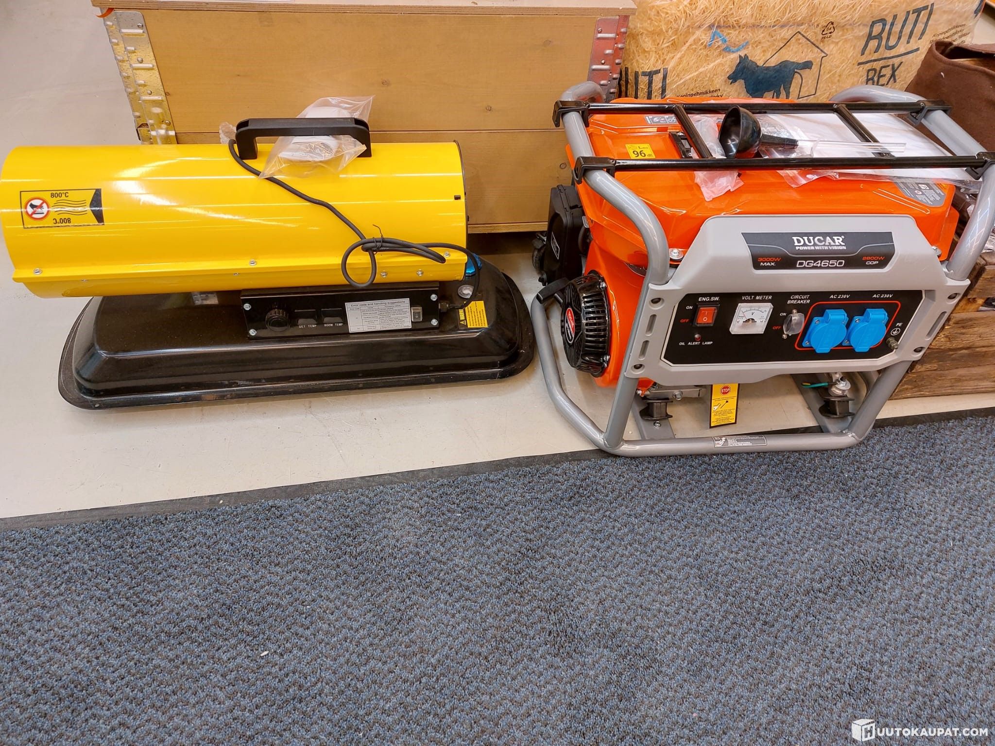 Myydään yhteishuutokaupalla Aggregaatti Ducar ja Diesellämmitin 20KW. Esittelykappaleet, pahvilaatikot ei tallessa.