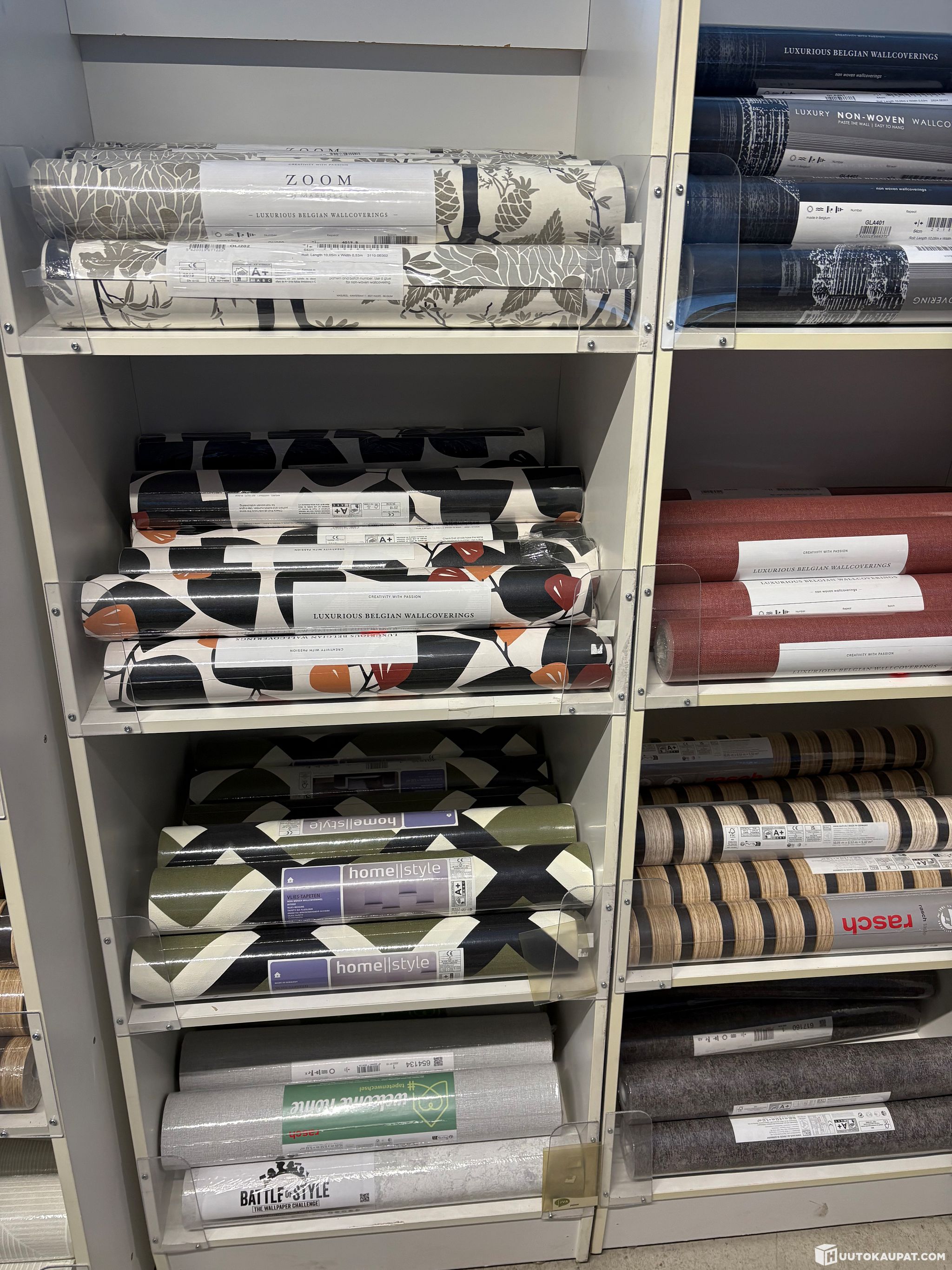 Löytyy myös täysiä lavoja ja myös vaalea sävyisiä tapetteja ja myös vähän lasikuitutapettia.