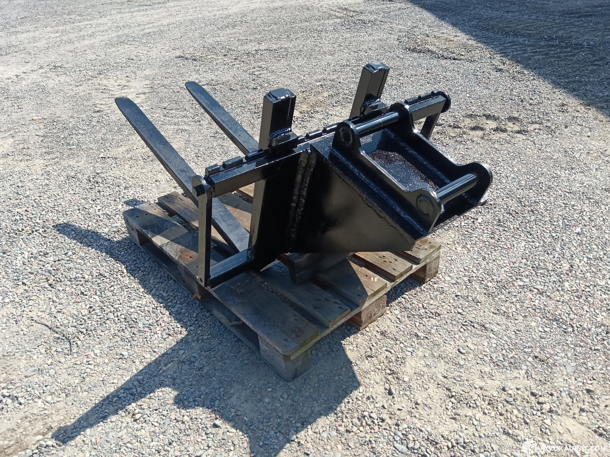 Kuvienmukaiset kaivinkoneen trukkipiikit S40 kiinnikkeellä. Pukin leveys n.100cm ja piikkien pituus n.115cm.