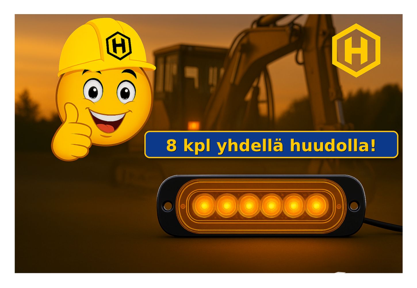 Hakusanat: LED-varoitusvalo, 6 LED, oranssi, amber, 12V, 24V, IP67, pölytiivis, vedenkestävä, ajoneuvo, työkone, hätäajoneuvo, kuorma-auto, peräkärry, rakennustyömaa, turvallisuus, huomiovalo, vilkkuvalo, välähdys, monipuoliset vilkkukuviot, ulkokäyttö, helppo asennus
