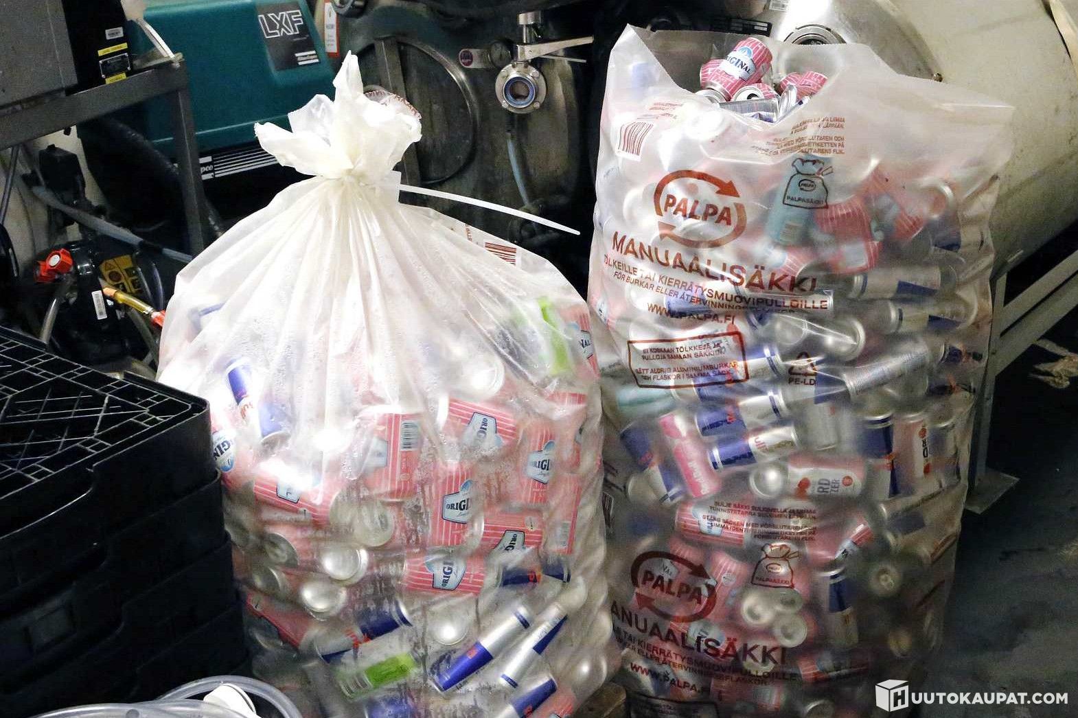 Kaksi Palpa-säkkiä tölkkejä. HBB1460. Restaurations Kompagniet Finland Oy (Heidi´s Bier Bar) konkurssipesä 3535417-5, Helsinki