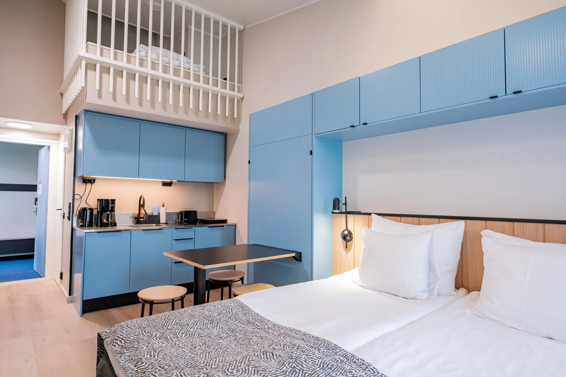 Vuodepaikat neljälle sekä lisävuoteet kahdelle