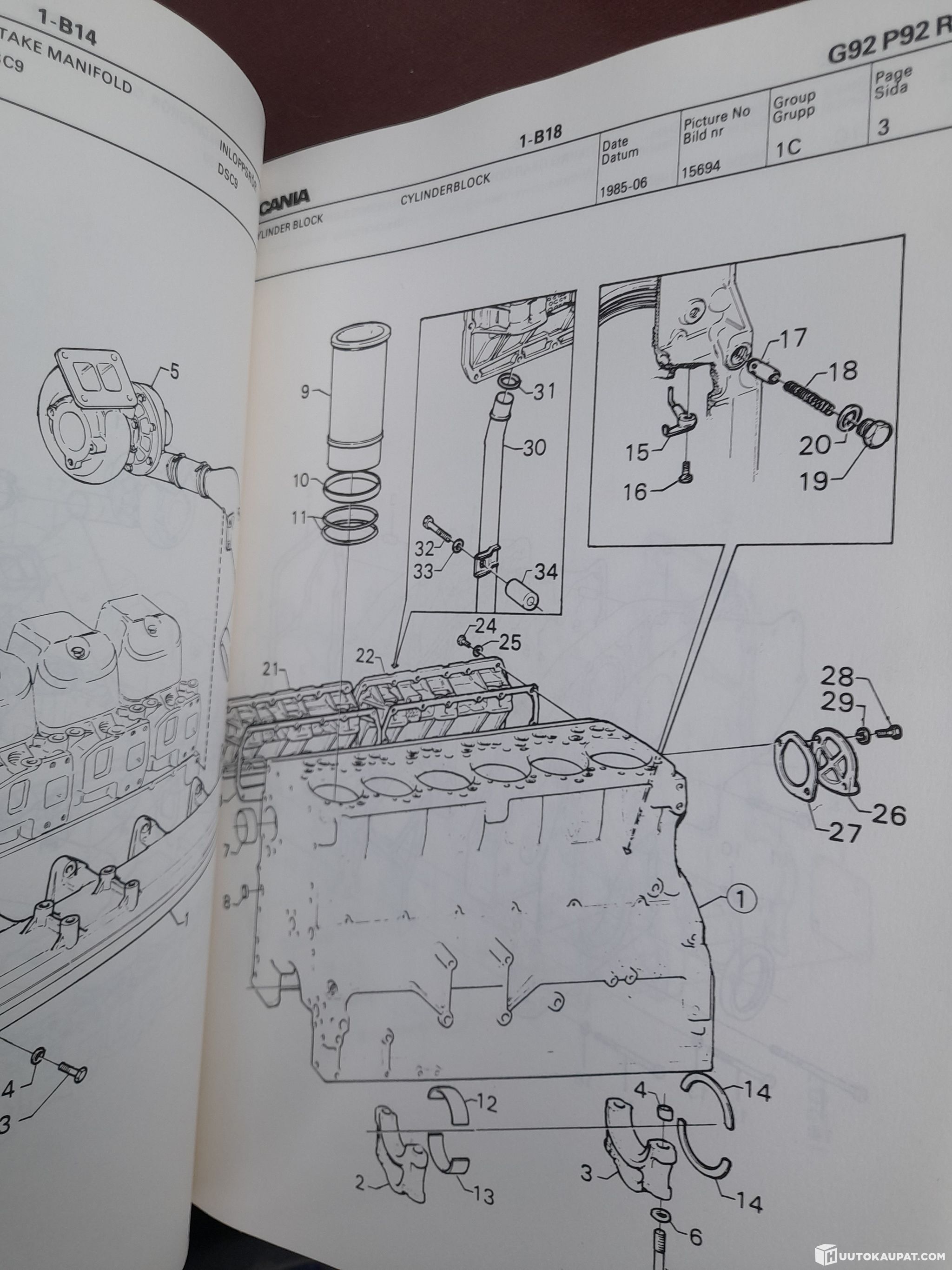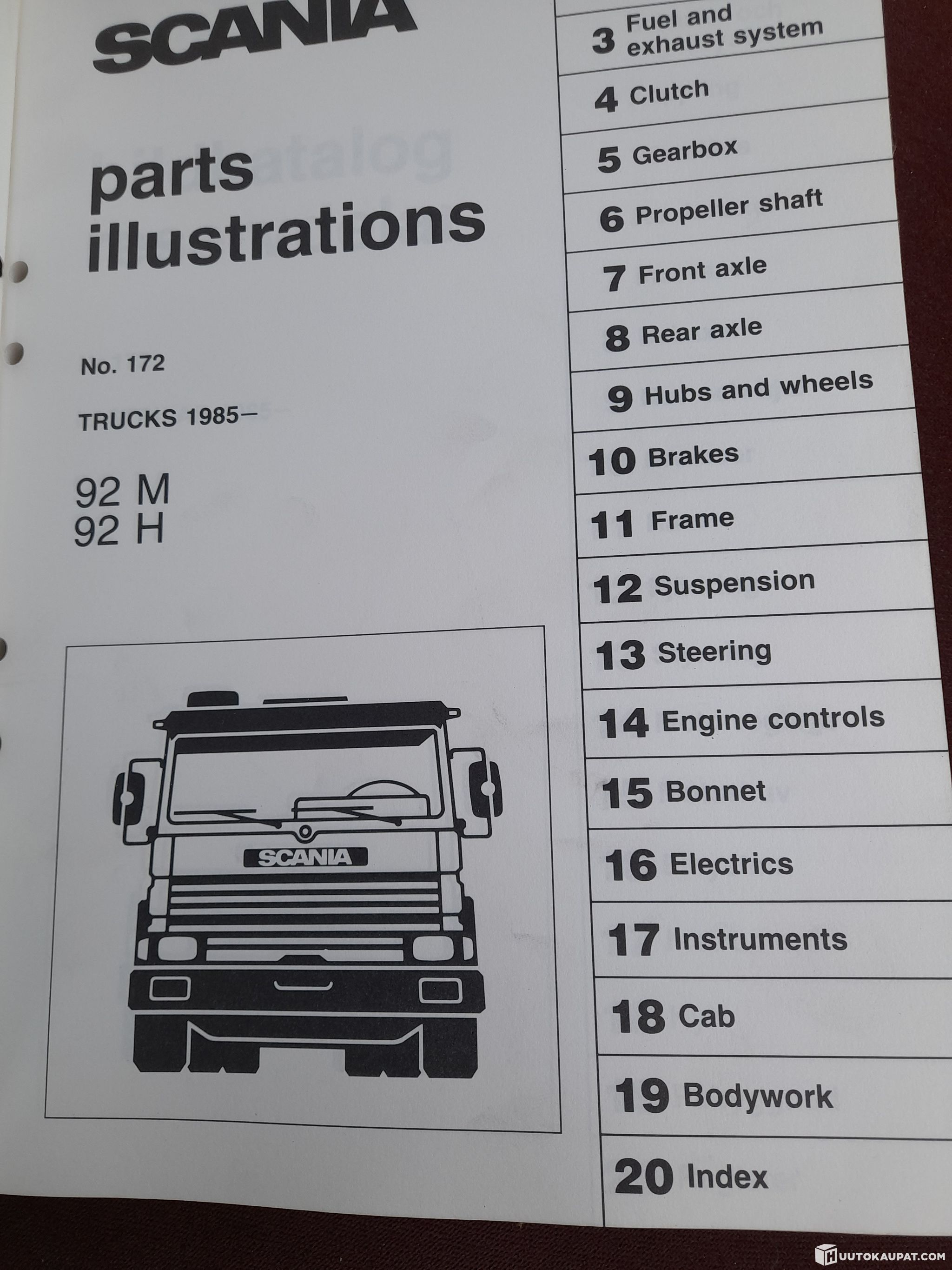 Alkuperäinen Scanian varaosakirja.