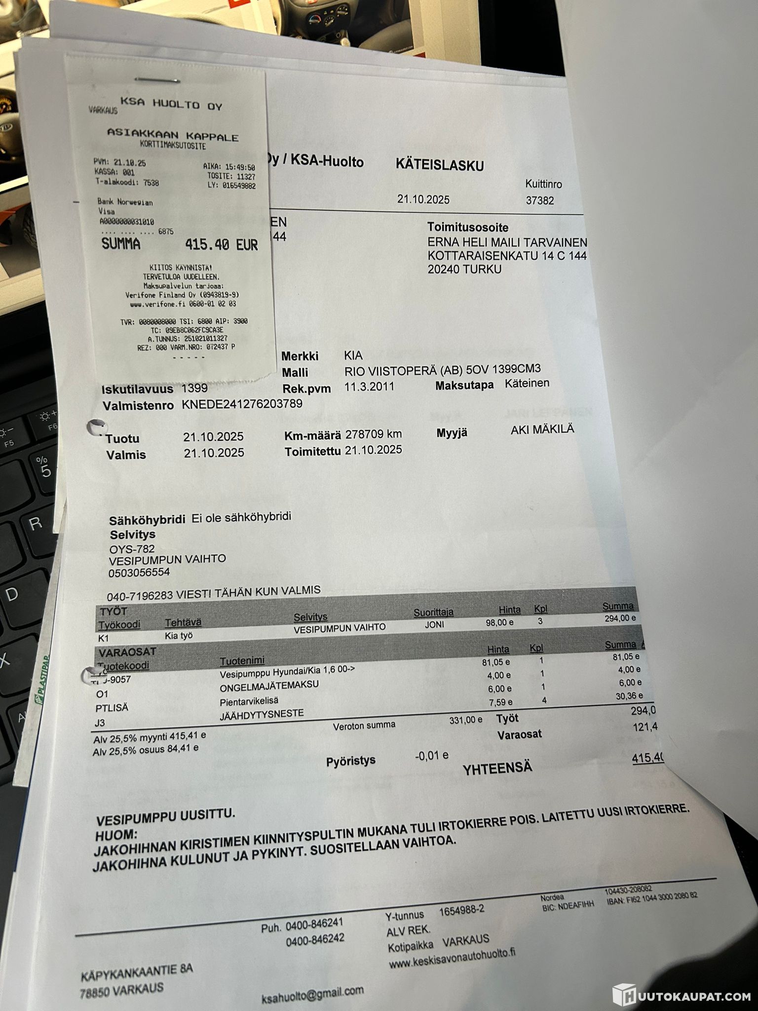 Jakohihna ja vesipumppu juuri vaihdettu!