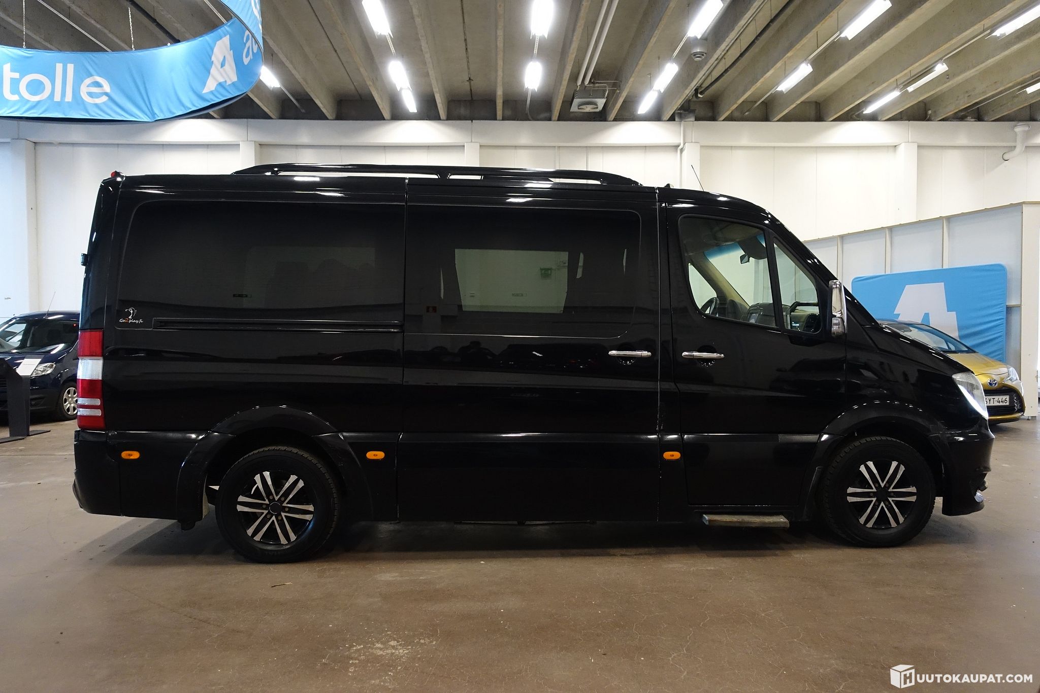 Huutokaupassa näyttävä ja laadukas Mercedes-Benz Sprinter Cuby 319 CDI V6, keskipitkällä A2-korilla. Kyseessä ei ole tavallinen minibussi, vaan aito puolalaisen Cuby-pajan käsityönä rakentama luksusbussi, jossa yhdistyvät Mercedeksen tekniikka ja Cuby-rakentajan viimeistelty matkustamo.