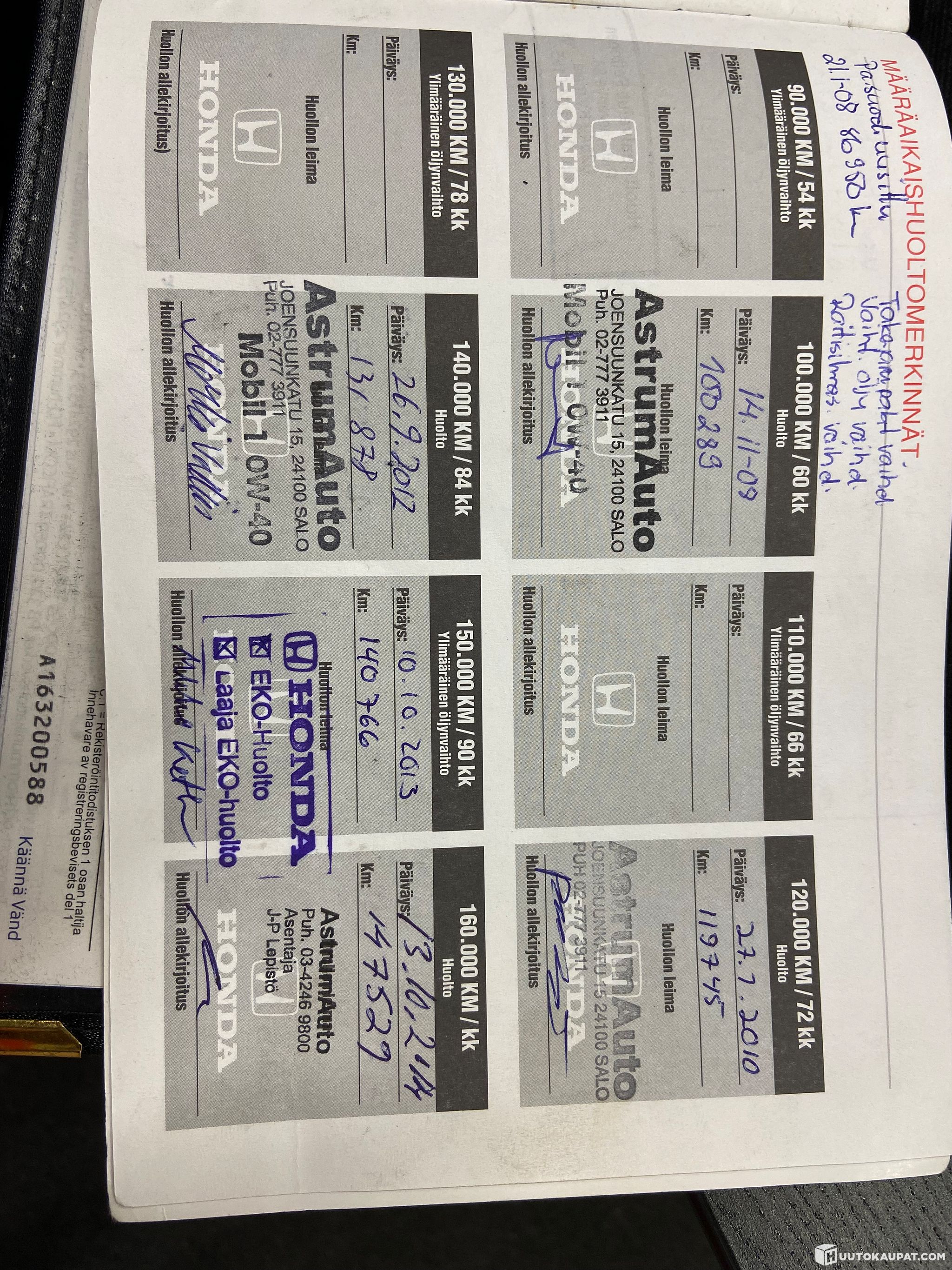 Muuten tämä Honda CR-V on ikäisekseen hyvässä kunnossa. Auto tuli meille suoraan ajosta ja sitä on huollettu säännöllisesti. Huolloista on runsaasti kuitteja tallessa.
