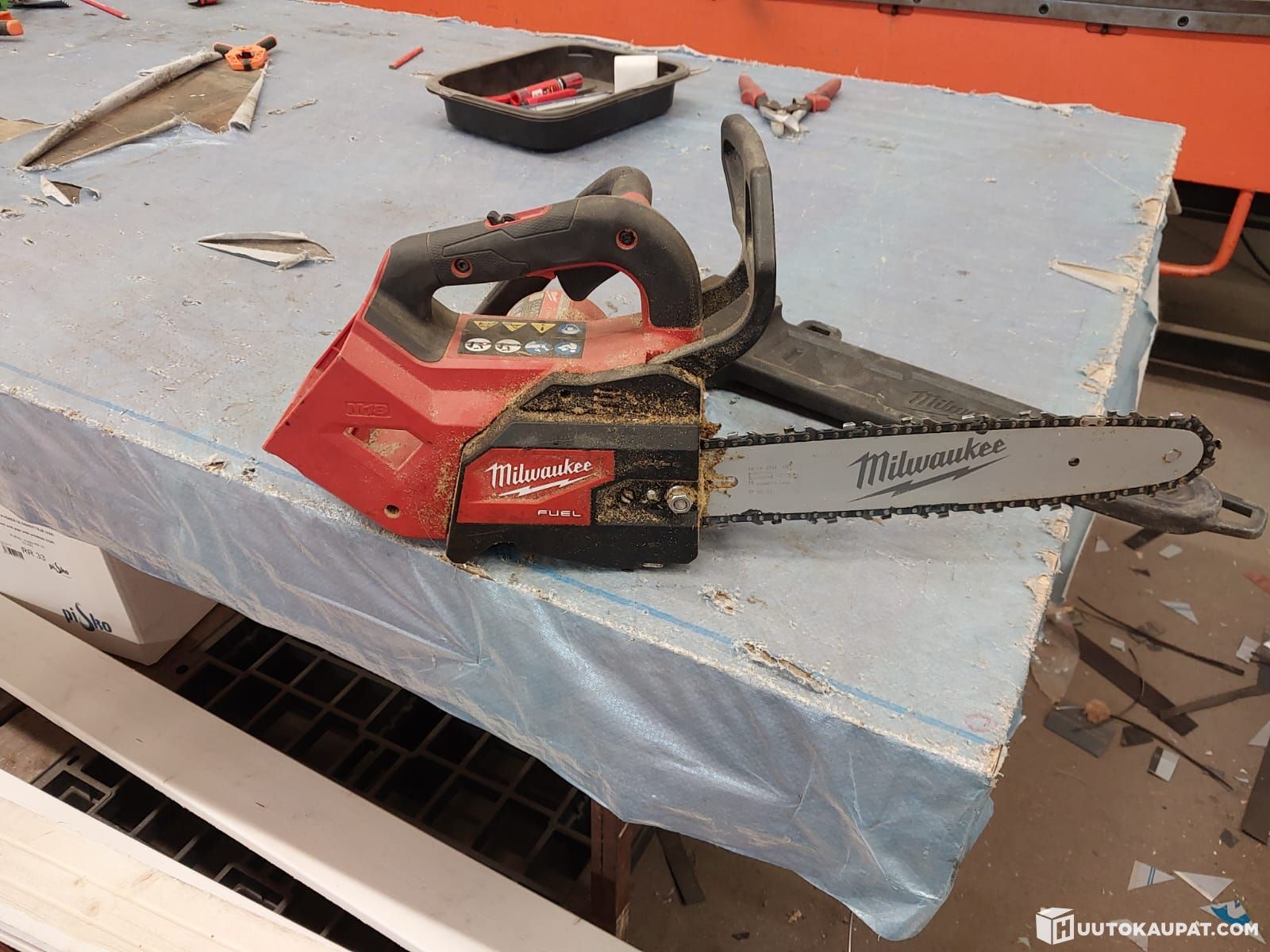Milkkarin akkuketjusaha, myydään ilman akkua ja laturia, kuvan 10"laipalla ja siinä olevalla teräketjulla.