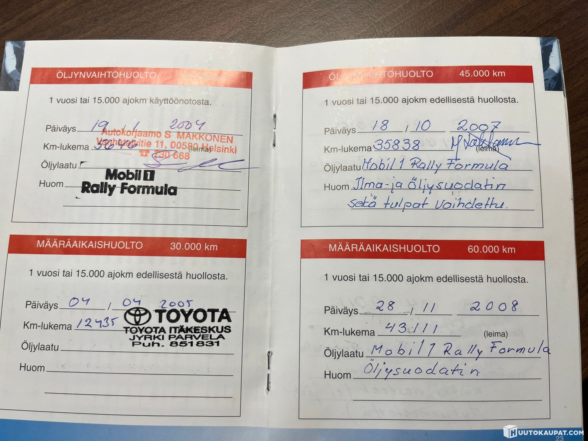 Viimeisin huolto tehty 285000km kohdalla