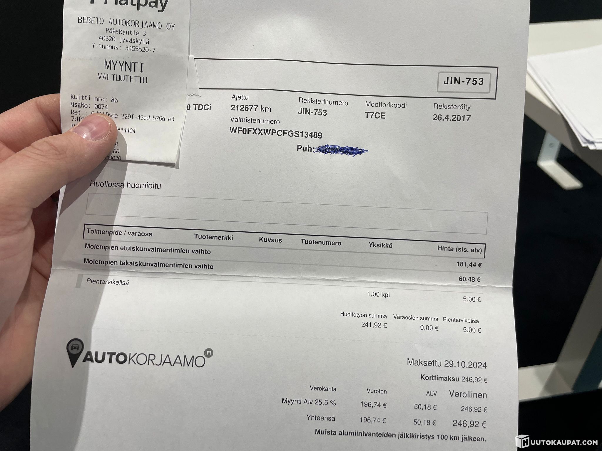 212tkm 10/2024 Vaihdettu etu ja taka iskunvaimentimet