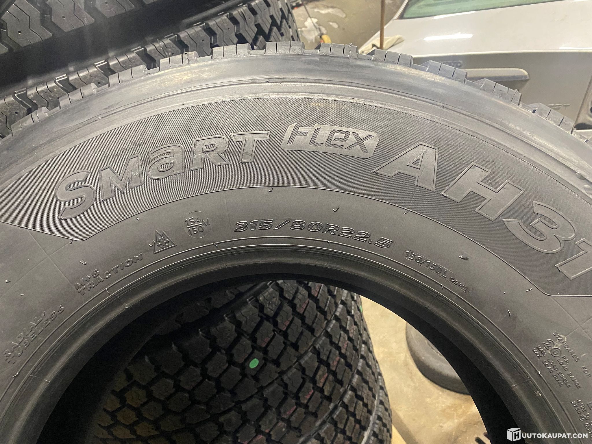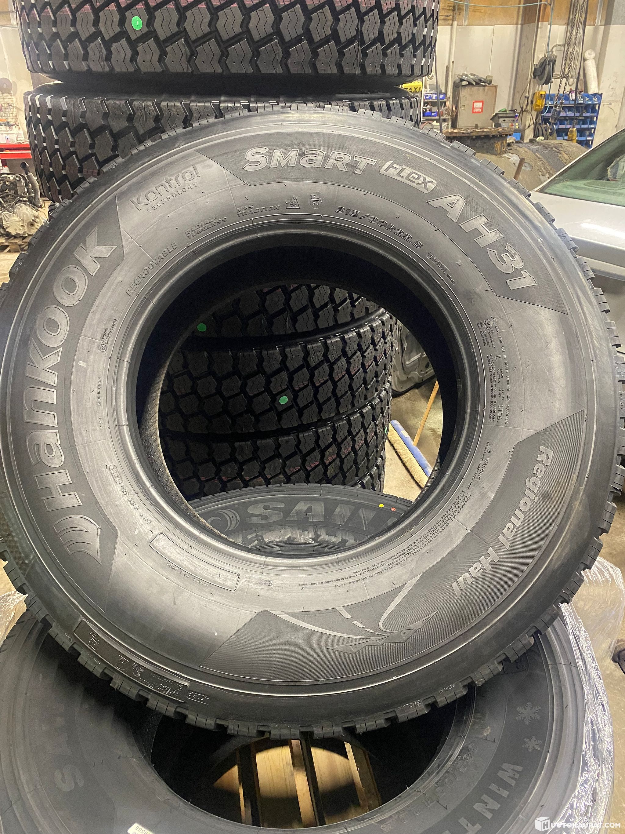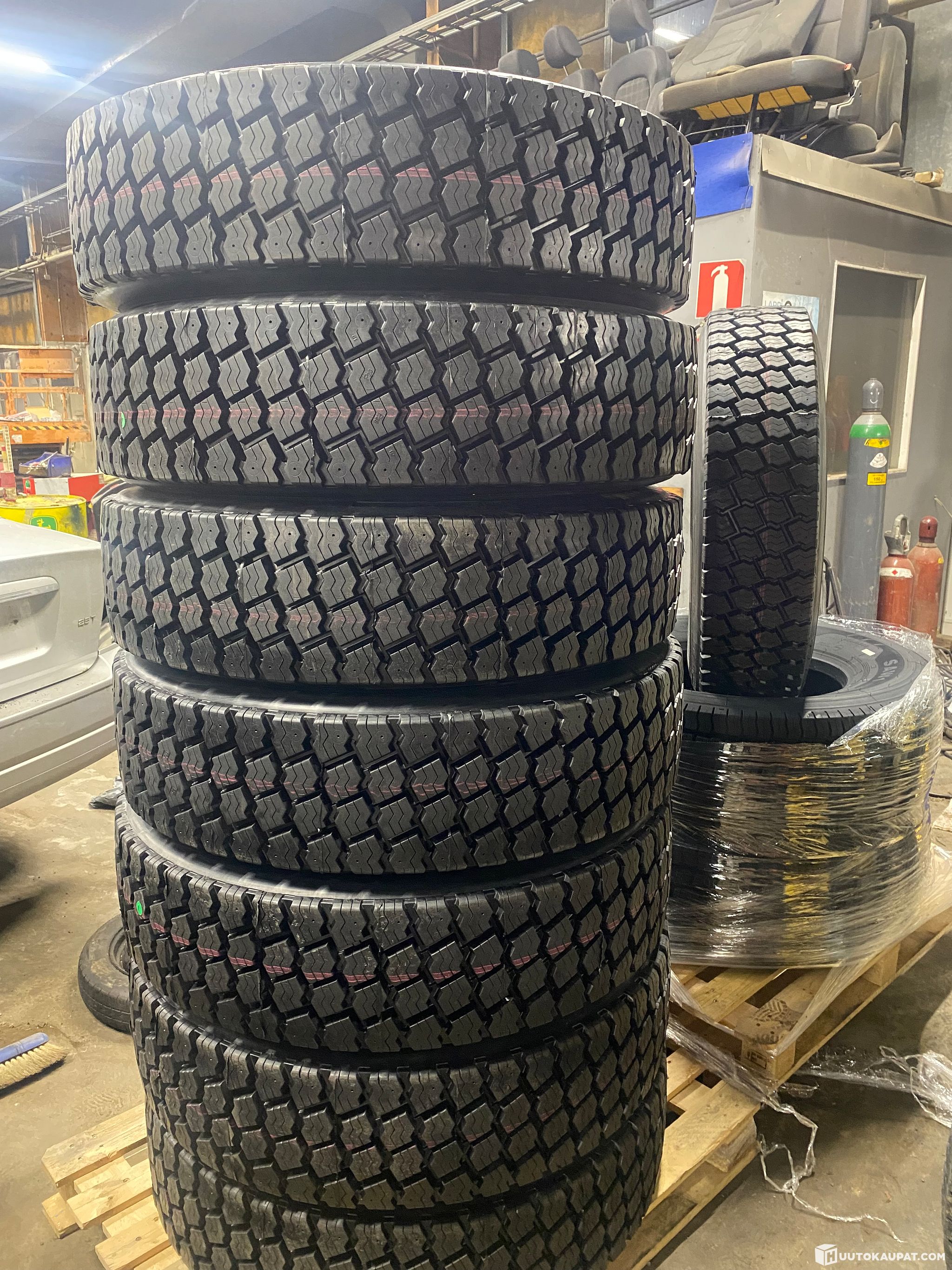 8 kappaletta pinnotettuja vetopyöria Hankookin 1 rungolla. Koko 315/80R22,5