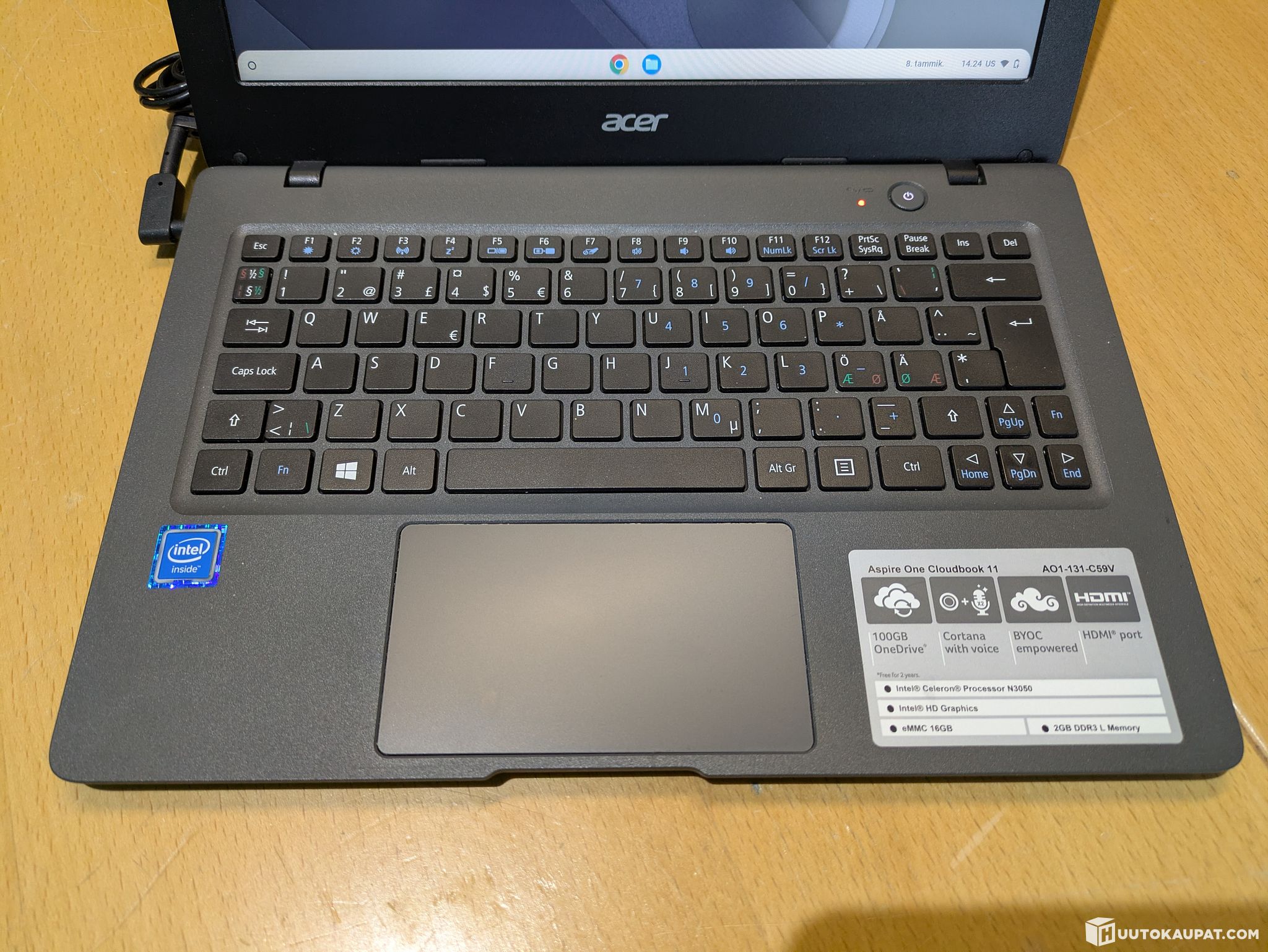 Siistikuntoinen 11” Acer Aspire One -sarjan kevyt Chromebook.