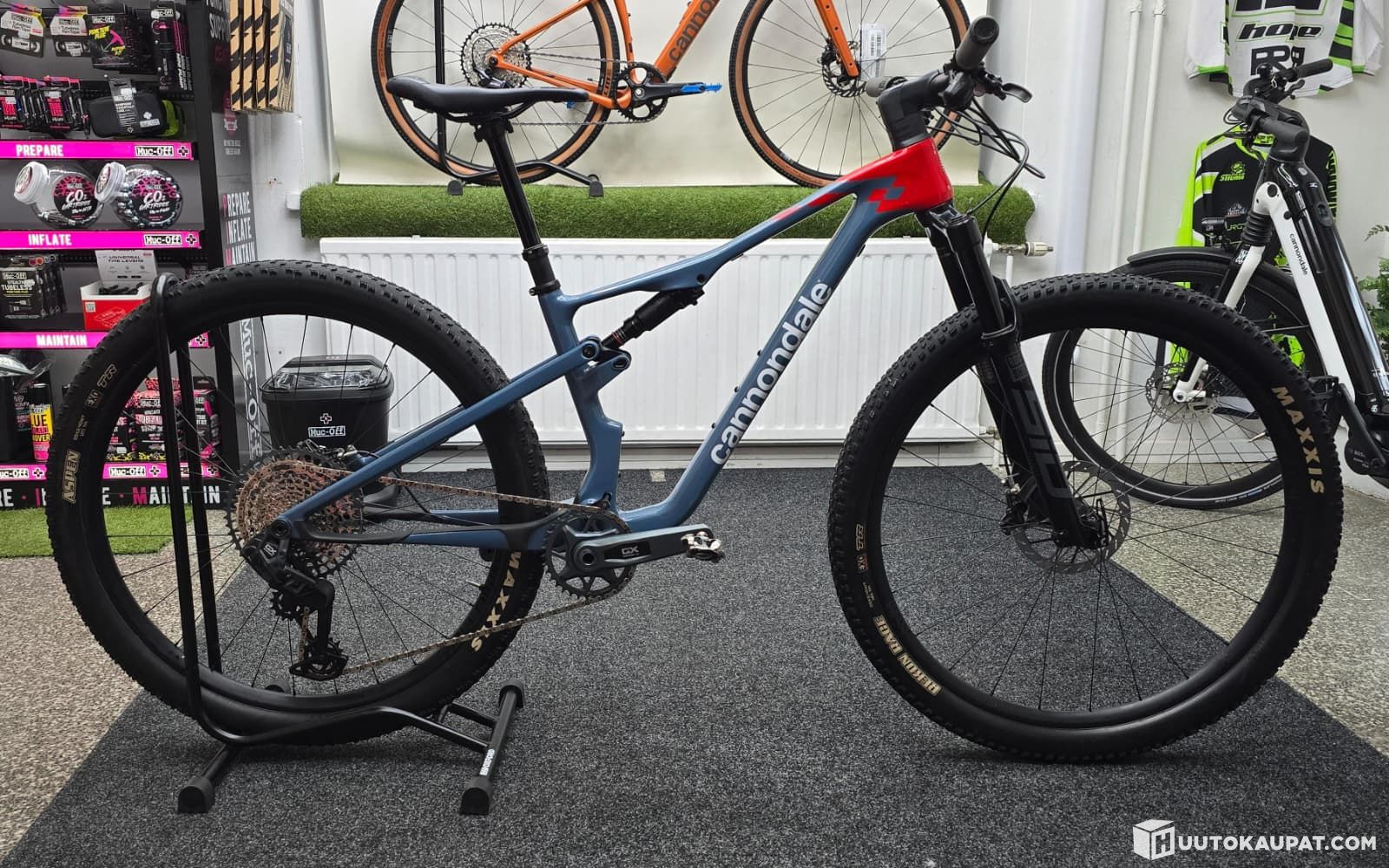 Hyväkuntoinen demopyörä Scalpel 2 AXS Carbon, jolla ajettu n. 500 km. Erinomainen ja kevyt pyörä XC-hommiin. Ensihuolto ja 50 h iskarihuollot tehty. Sähköinen takavaihtaja, mukaan laturi. Gripshift-tyyppisesti tangosta lukittava ja avattaja jousitus. Etukiekossa Cannondale Wheel Sensor, Cannondale-puhelinsovelluksen kanssa käytettäväksi. Kuvista poiketen satulana Prologo Dimension NDR, STN kiskoilla. Mustat jäljet ovat suojateipeissä eli eivät suoraan pyörän pinnassa.