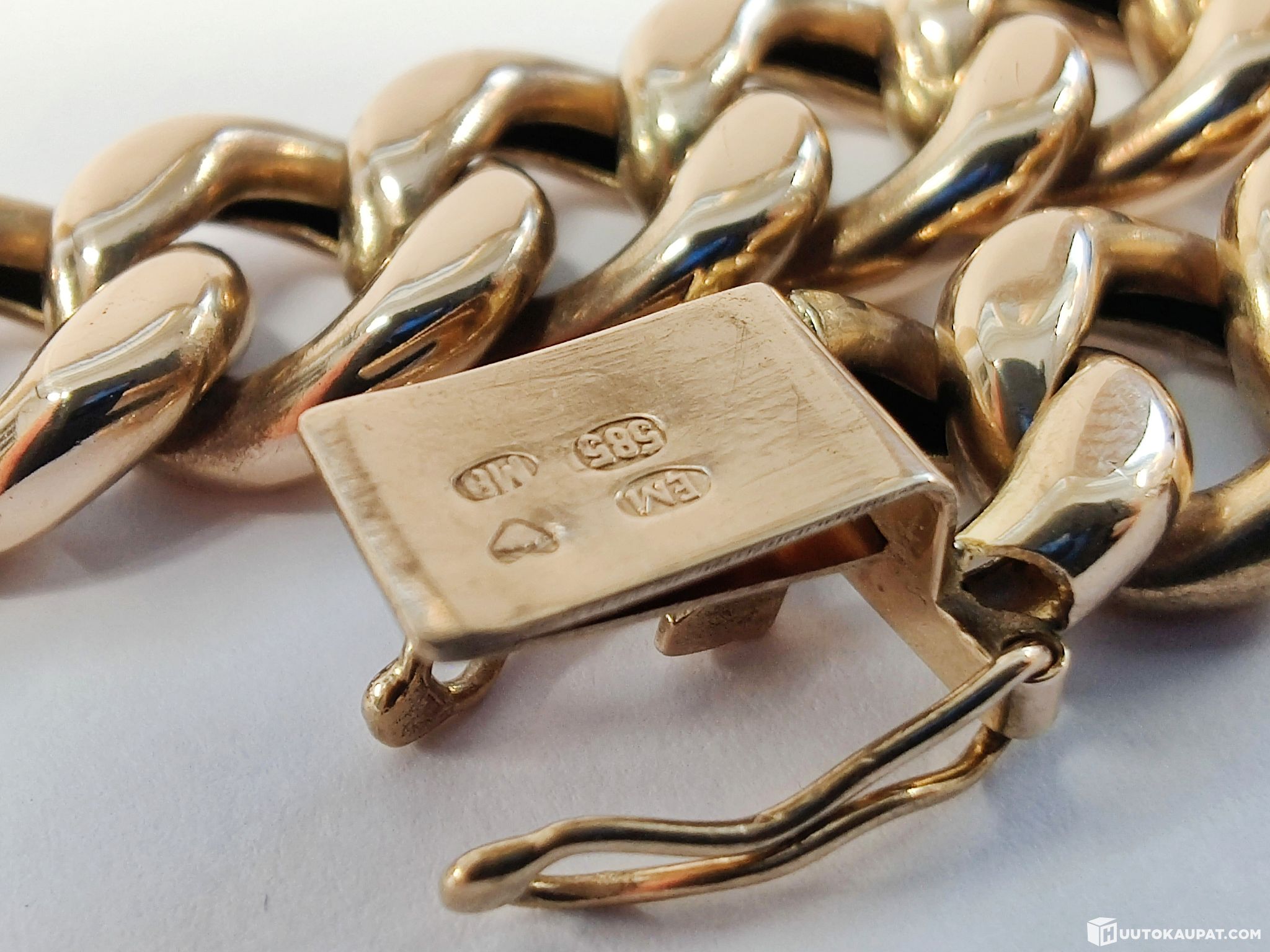 Komea kotimainen panssariranneketju 585 14k kultaa.