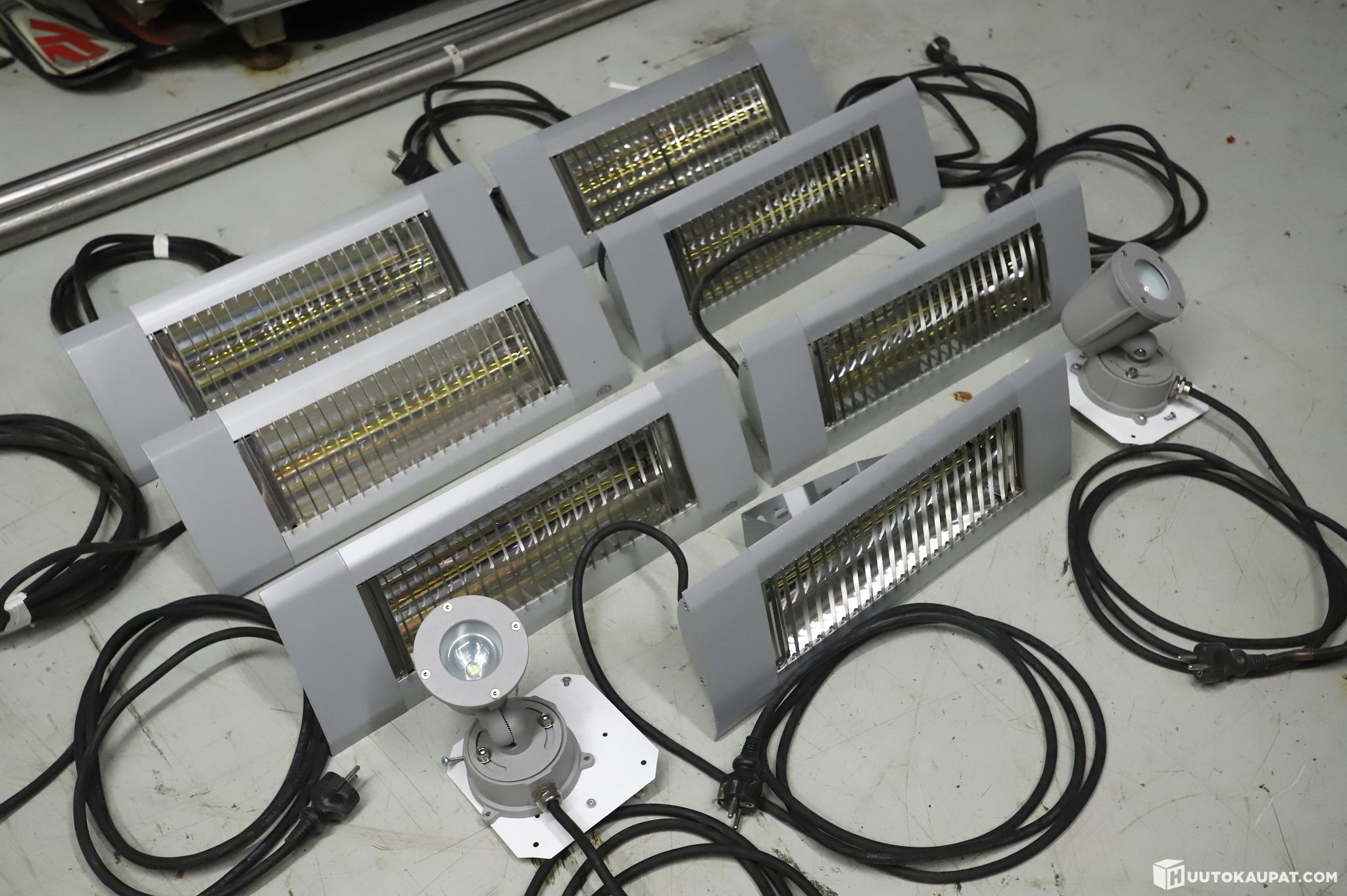 Terassilämmittimiä 10 kpl ja led-spotteja 2 kpl.
