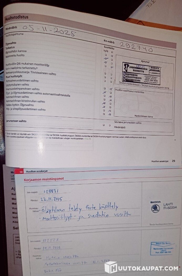 Öljy, suodattimet, sytytystulpat ja polttoainesuodatin on vaihdettu. Pakoputken korjaukset on tehty. Viimeisin öljyn- ja suodattimenvaihto on tehty 30.12.2025. Moottori käy hyvin.