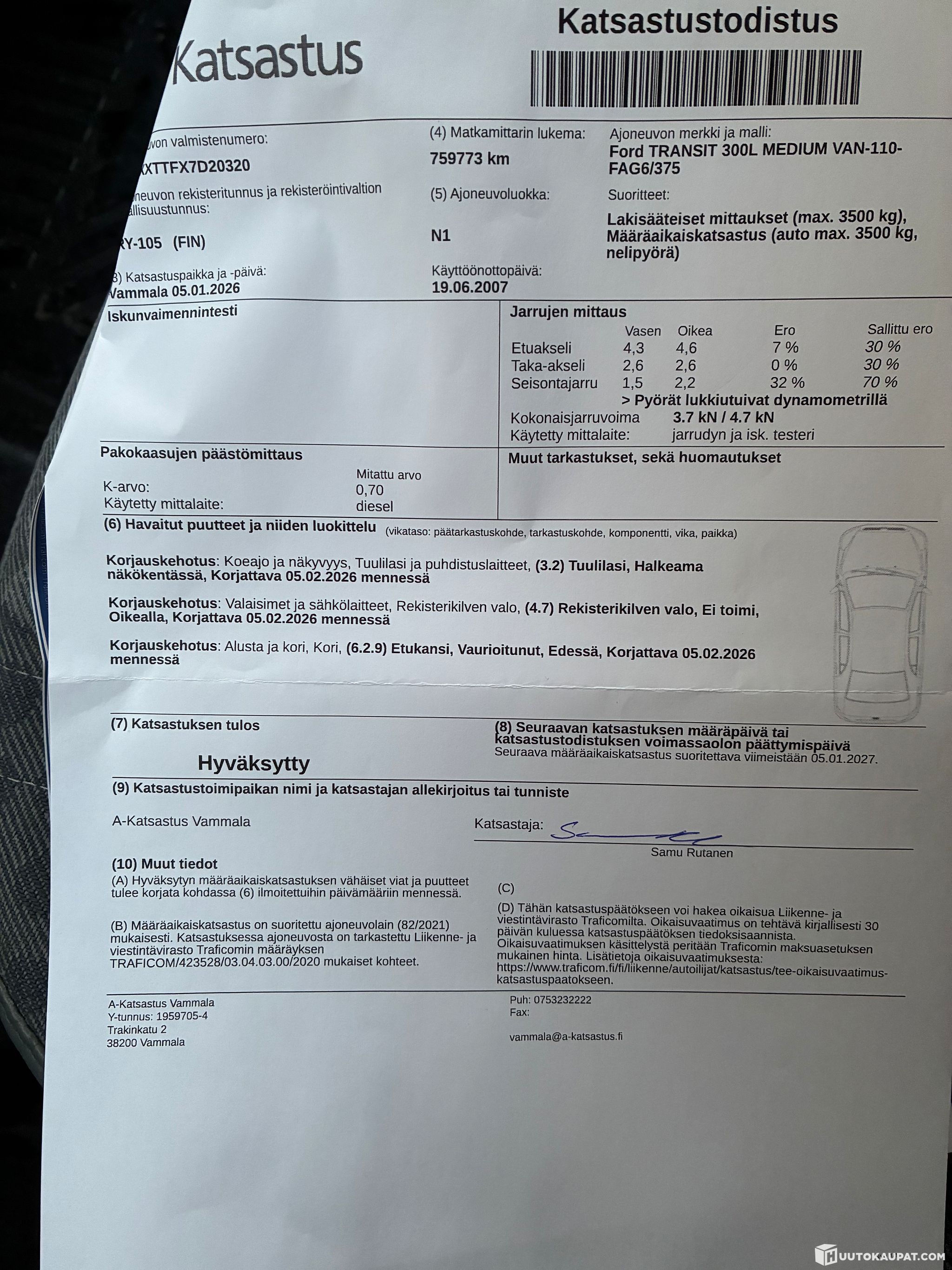 Ajoneuvo noudettava 7vrk kuluessa huutokaupan päättymisestä ellei toisin sovita -Huutokaupat.com.