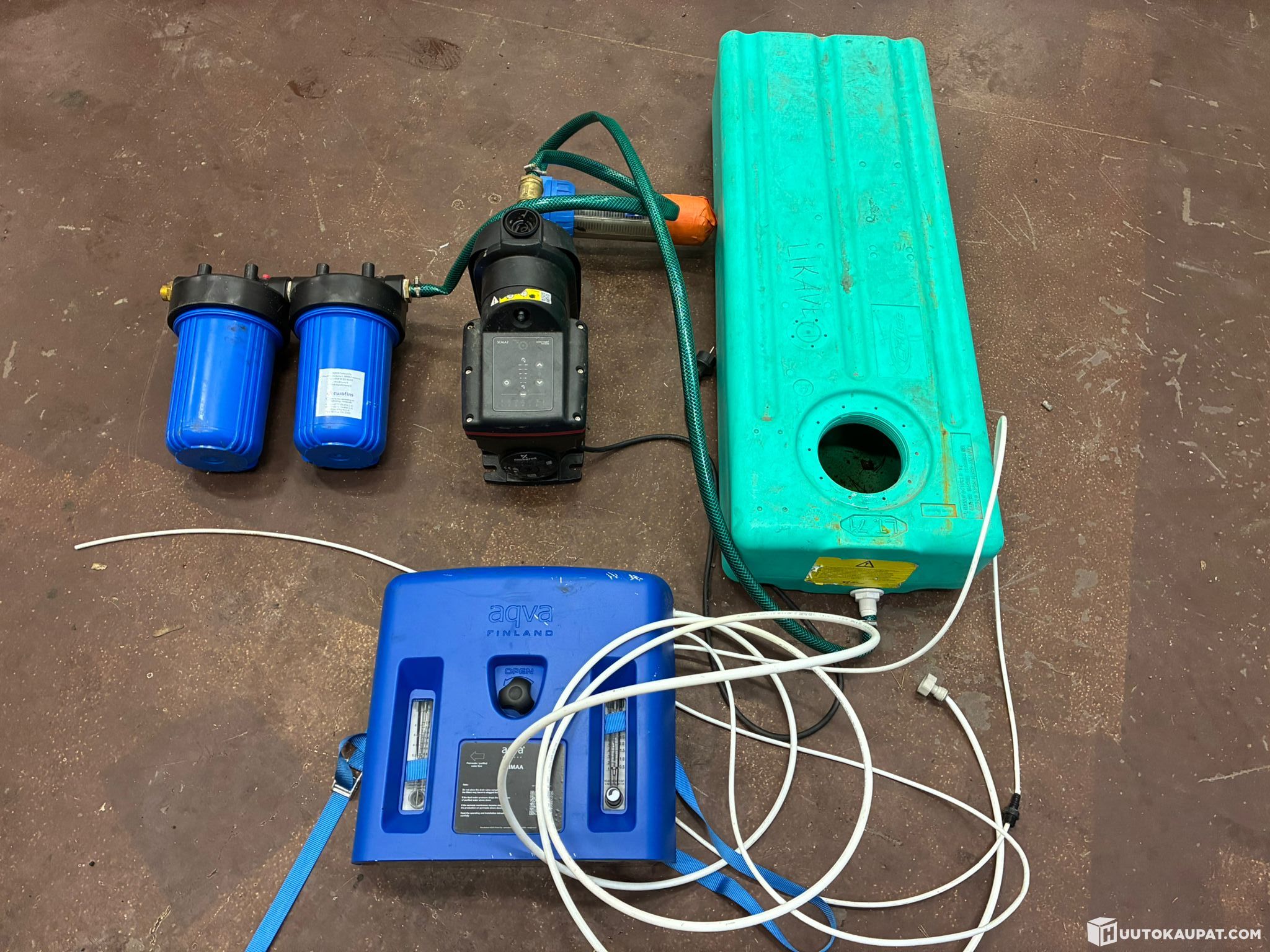 Käänteisosmoosilaite juoma- ja ruokaveden puhdistamiseen merivedestä. Grundfos x pumppu. Näiden ovh yhteensä noin 3600€ uutena (yhdellä kompressorilla). Kaikki kuvassa näkyvä kuuluu kauppaan. Ennen huutamista voi tulla tutustumaan tuotteisiin. Kompressoria on koekäytetty, että toimii.