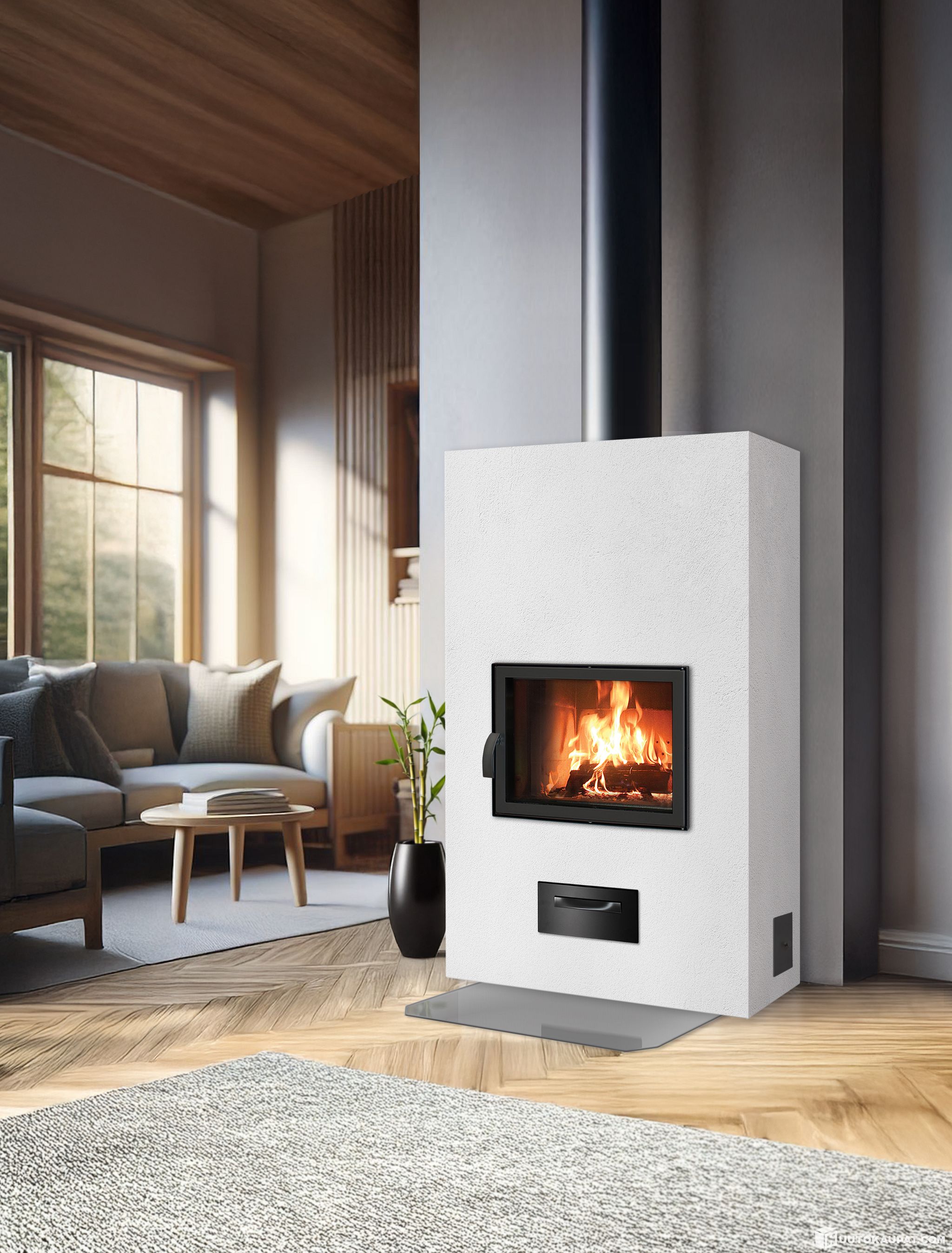Varaava takka Valkea 100 Basic teräsluukulla ja terävillä etukulmilla (tarvikepaketti ilman asennusta)