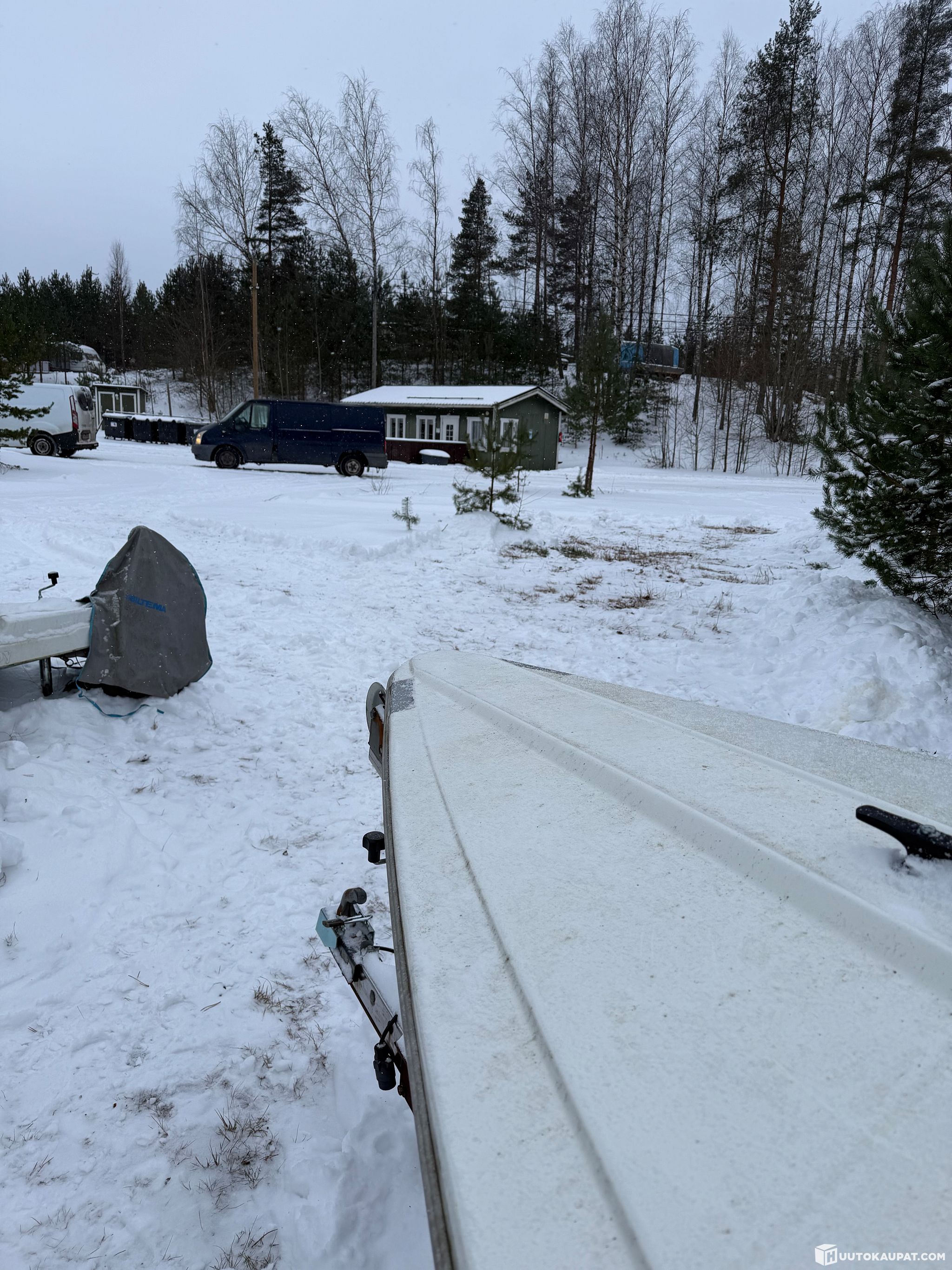 Ostaja vastaa paikan päällä kohteen kiinnittämisestä ja pois siirtämisestä. Kohteelta on tielle n.10m matka. Ostajan varauduttava tekemään (myyjä avustaa lumitöissä) lumitöitä saadakseen kohteen mukaansa.