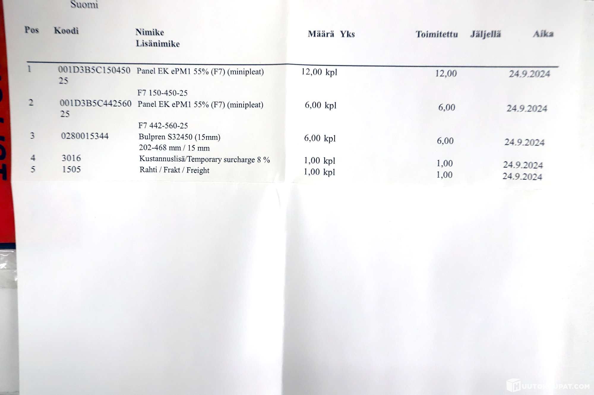 Toimituskulut koskevat toimitusta Manner-Suomeen.