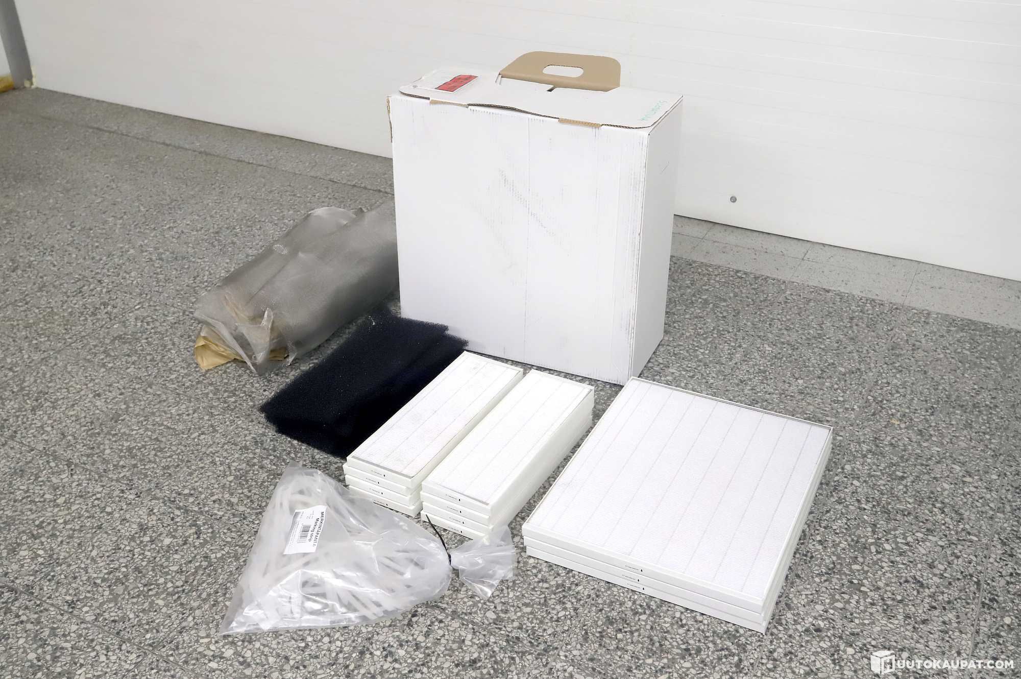 Ilmanvaihdon suodattimia ja tarvikkeita.