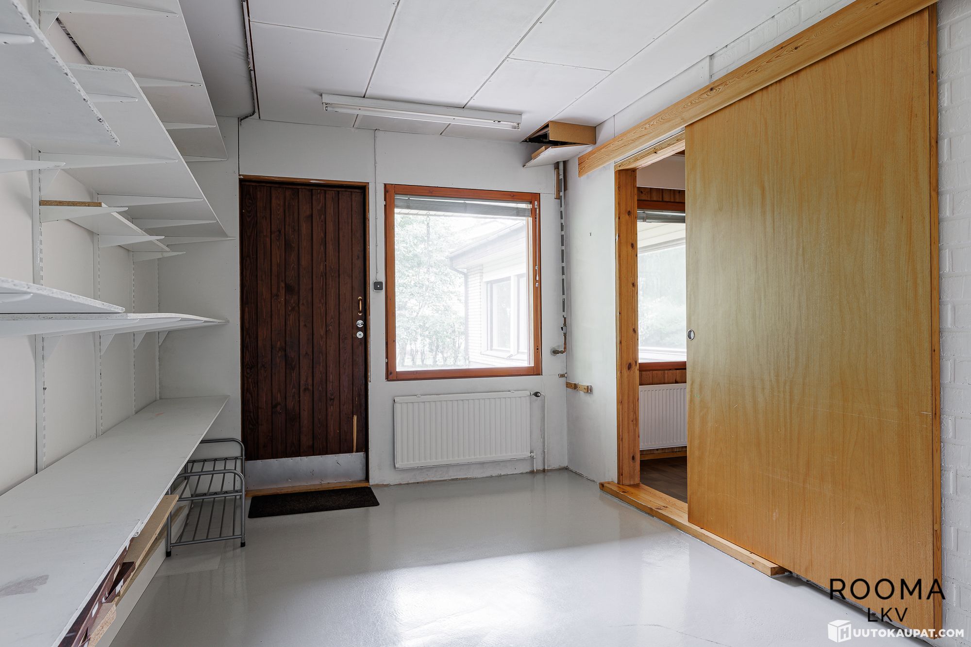Muiden tilojen kuvaus: Takkahuoneen lattia laatoitettu, seinät tiili, puu ja maali. Käynti ulos. Eteisen lattia laminaatti, seinät puu ja maali. Tuulikaapin lattia laatta, seinät puu.
