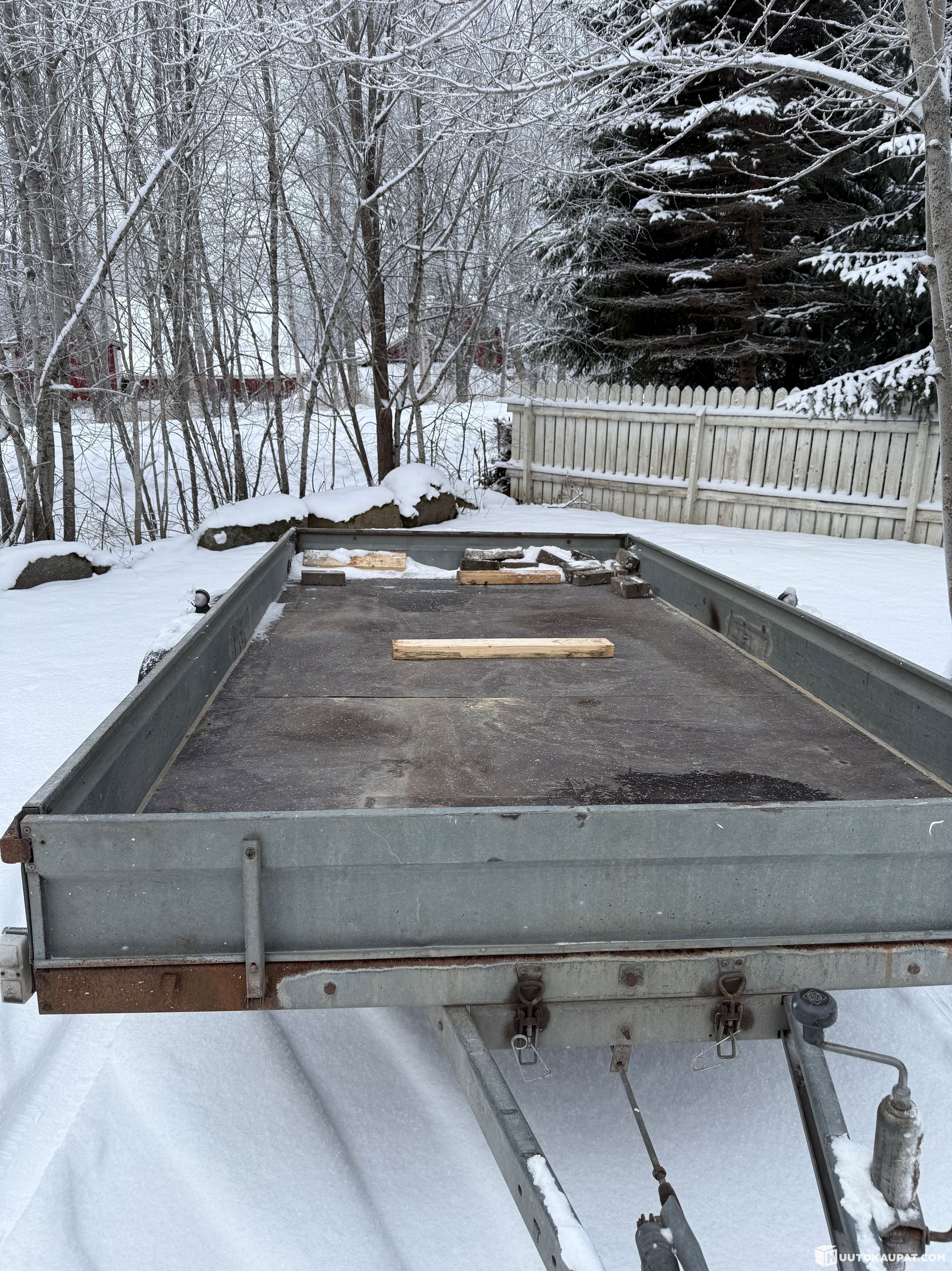 2-akselinen lavettiperäkärry harmaalla metallirungolla. Soveltuu erilaisten kuormien kuljetukseen. Käytetty, hyväkuntoinen peräkärry. Käyty täysin läpi, uudet jarrut, renkaat, vanerit ja valot.