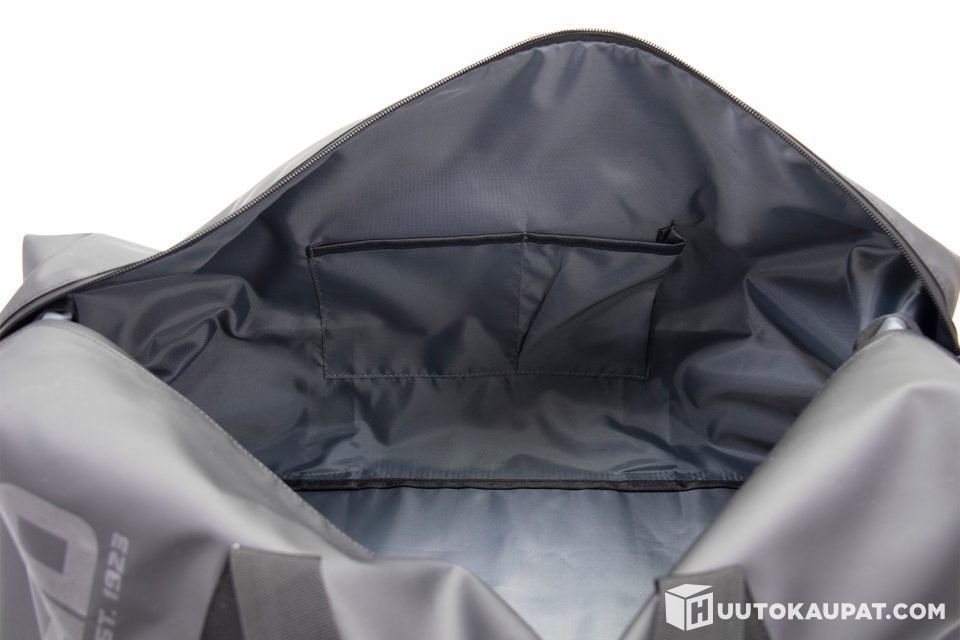 "Säänkestävä duffel kassi on valmistettu kierrätetyistä muovipulloista, joka tekee ekologisuuden lisäksi kassista vedenpitävän. Myös vetoketjujen saumat ovat teipatut, jotka tekevät niistä vedenpitäviä.