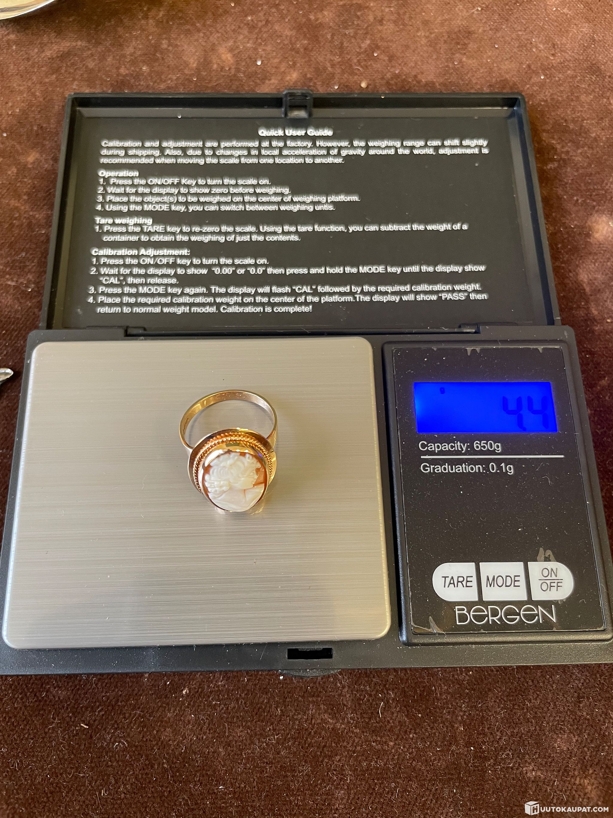 Myydään upea vintage camee kultasormus.