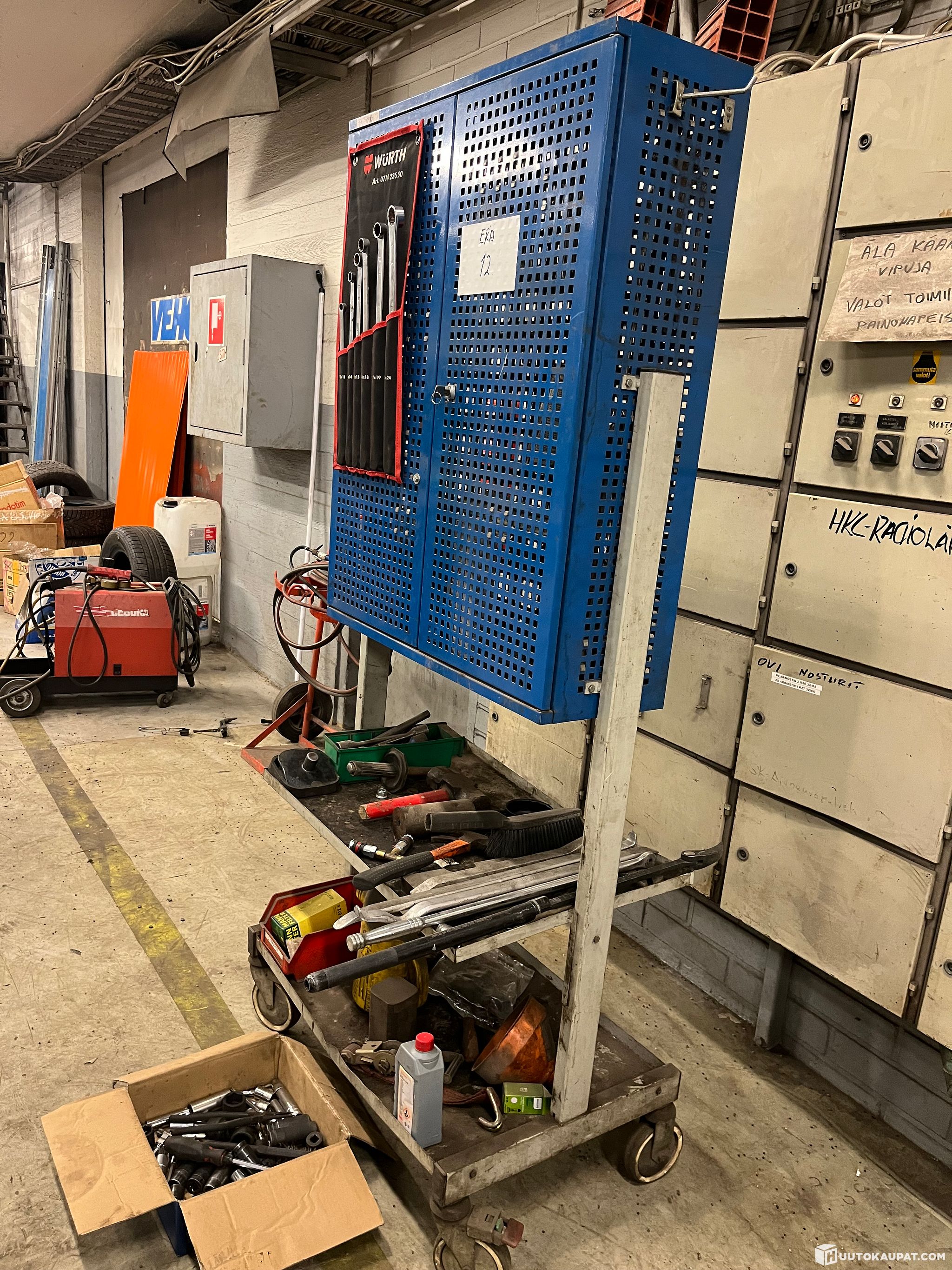 Autokorjaamon työkaluja, työkalukaappi työkaluineen, Erä 12