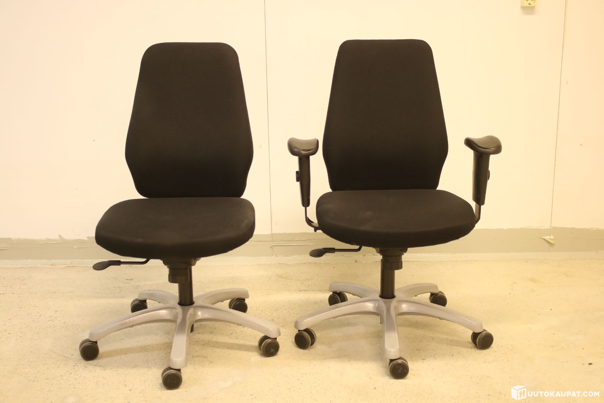Kaksi laadukasta työtuolia monipuolisilla säädöillä.