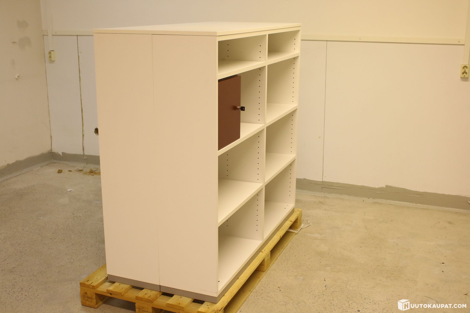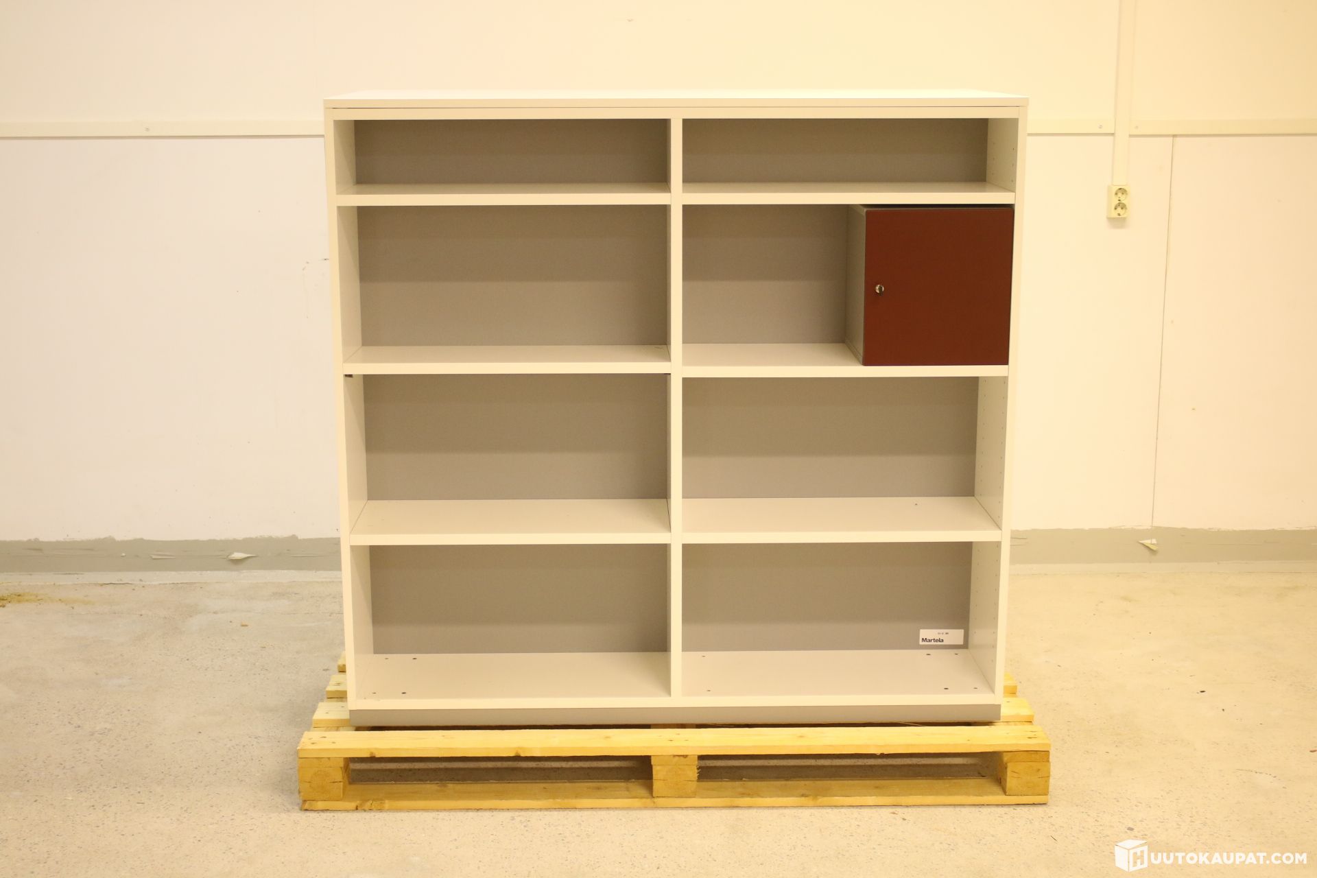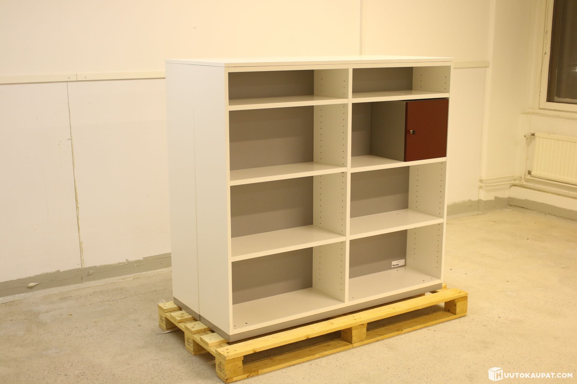 Laadukas Martelan kaksipuolinen avohyllykaappi. Molemmilla puolilla lukittava lokero. Katon saa irti ja kaapin kahteen osaan. Yleisilme siisti, vähäistä käytönjälkeä.
