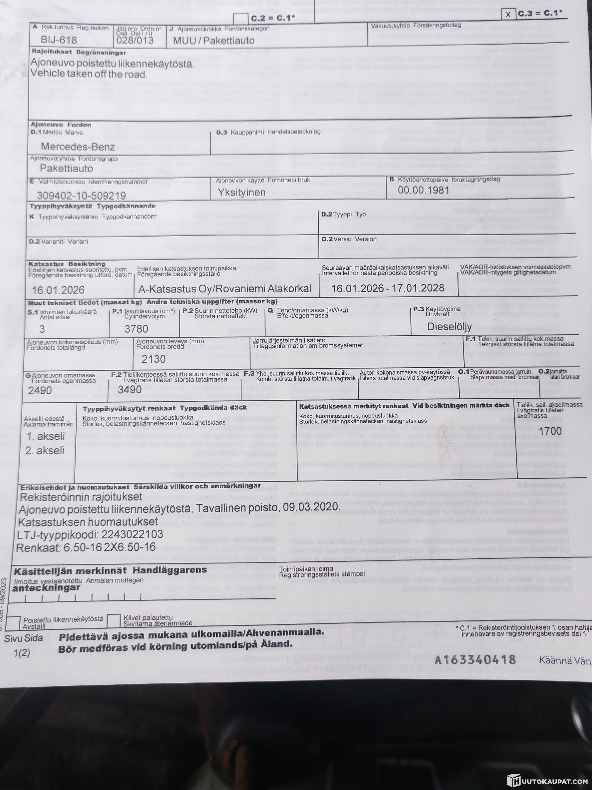 Autopalvelu Parkkila Oy ilmoittaa, Huutokaupat.com myy