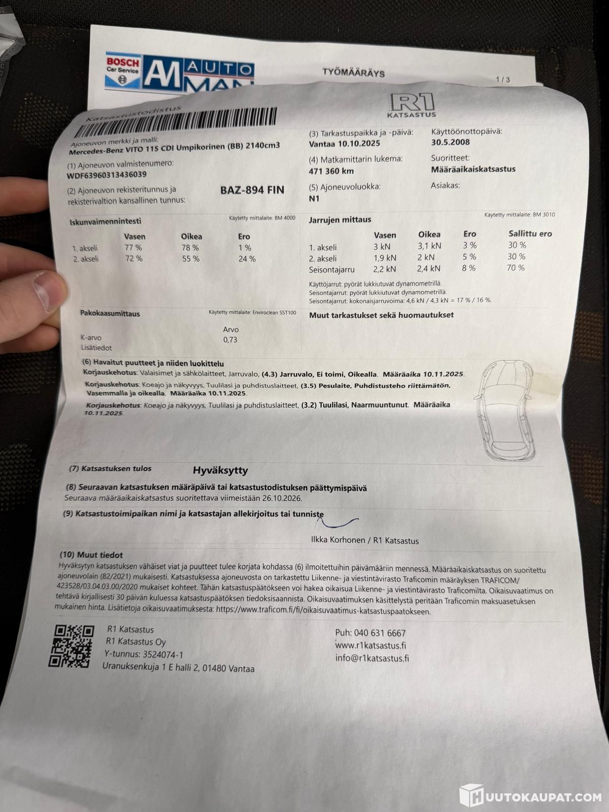 Ei tietliikennekelpoinen katso katsastustodistuksesta kuva