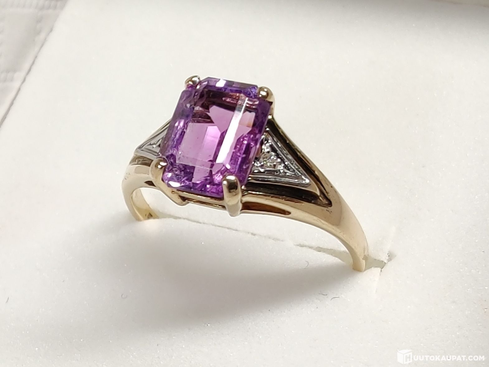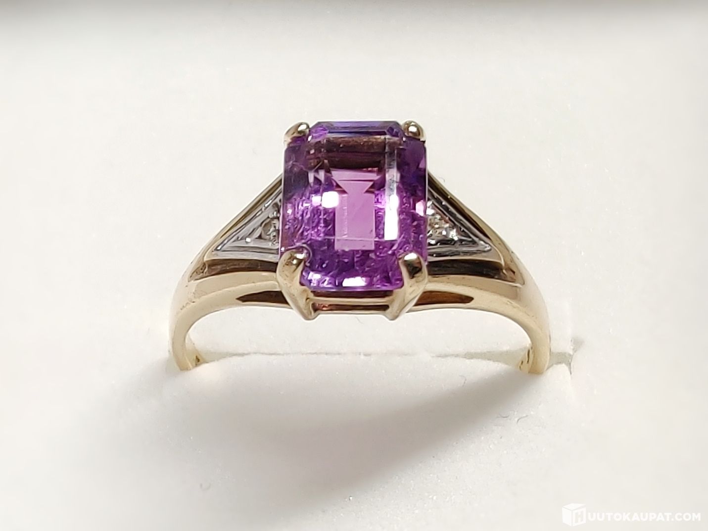 Todella kaunis timanttikoristeinen ametistisormus 585 14k kultaa.