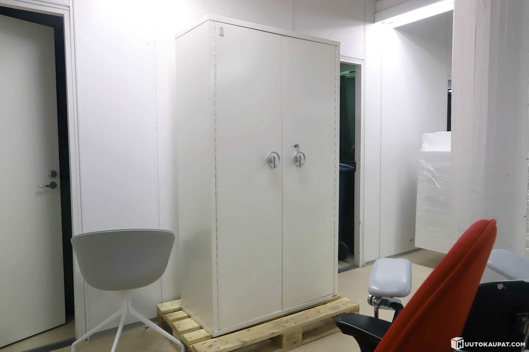 Painaa useita satoja kiloja, lastaus matalalta lastauslaiturilta. Noudettava perälaudallisella kuorma-autolla/hiabilla. Noutaja vastaa kassakaapin lastaamisesta.