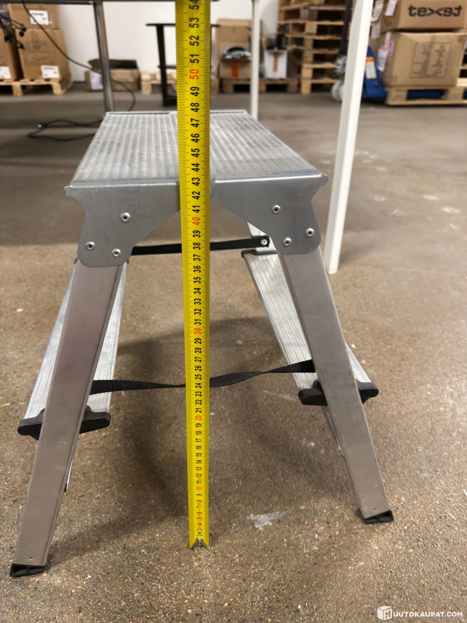 Taitettava porrasjakkara. Korkeus 43cm.