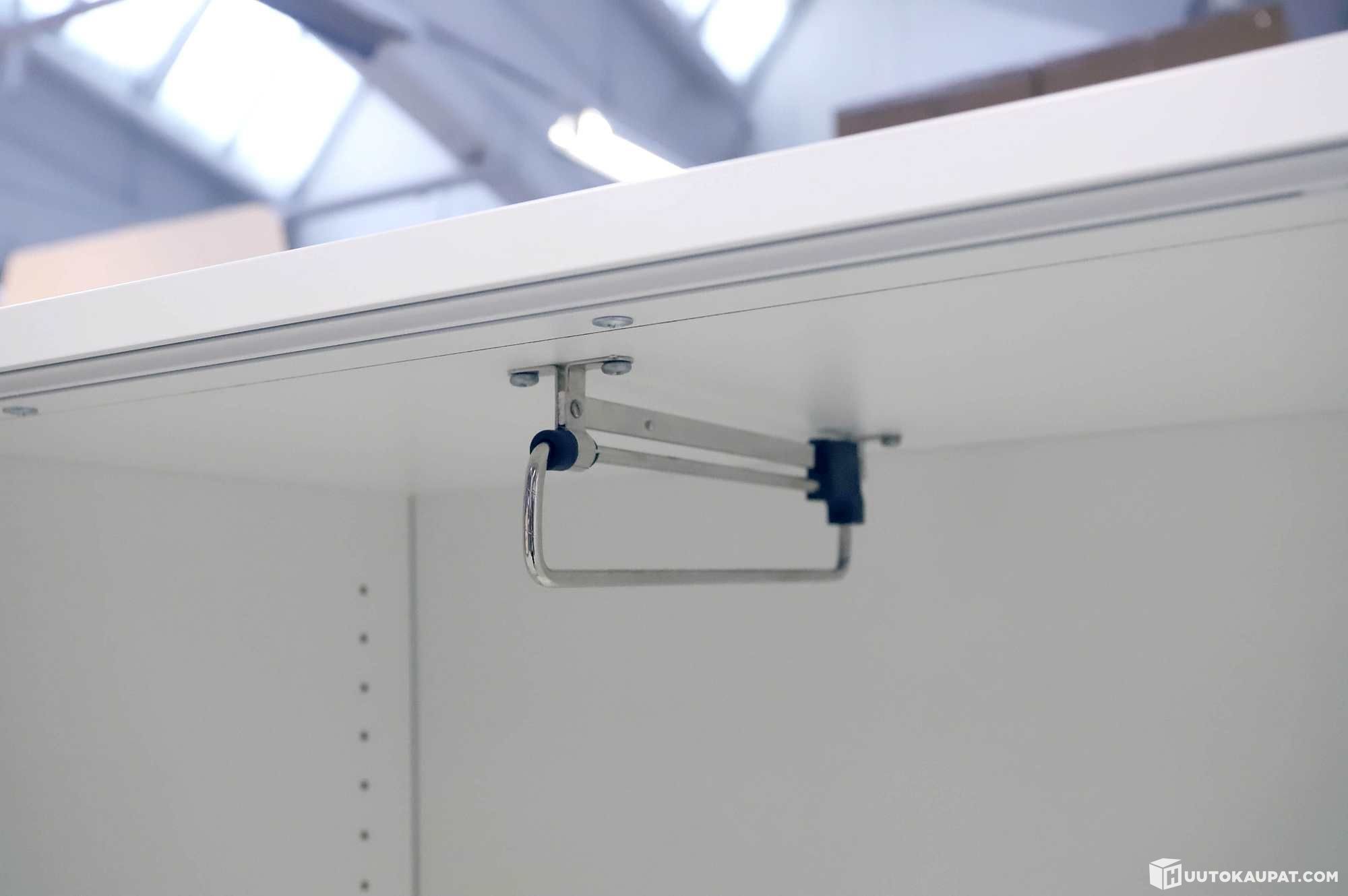 Osassa on molemmilla puolilla ulos vedettävät vaatetangot, osassa vain toisessa.