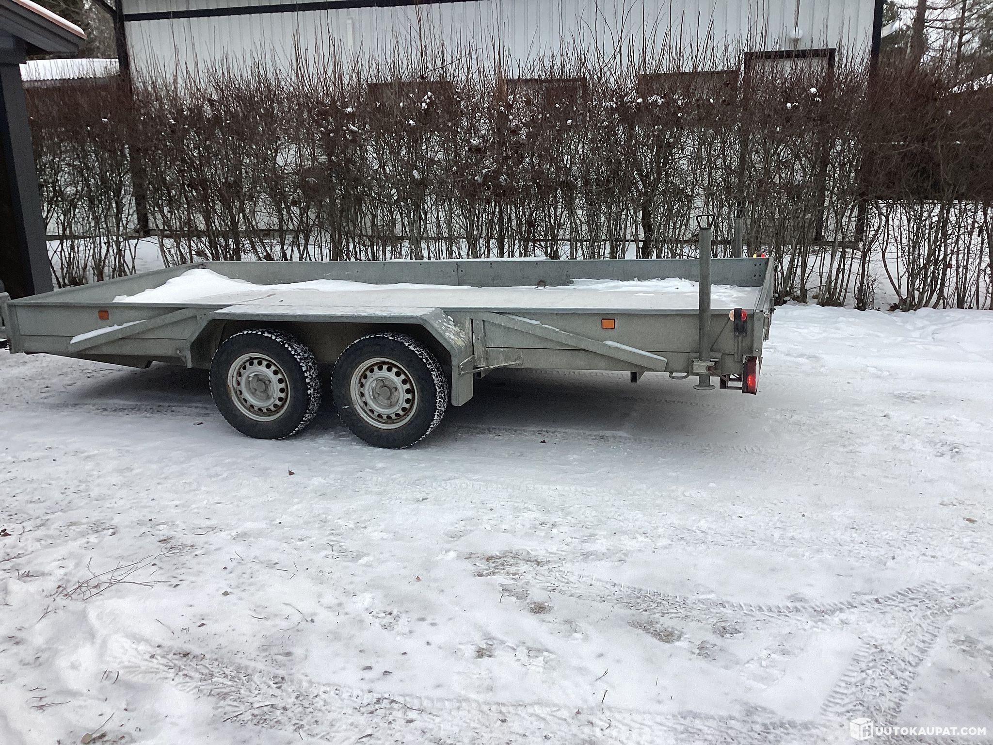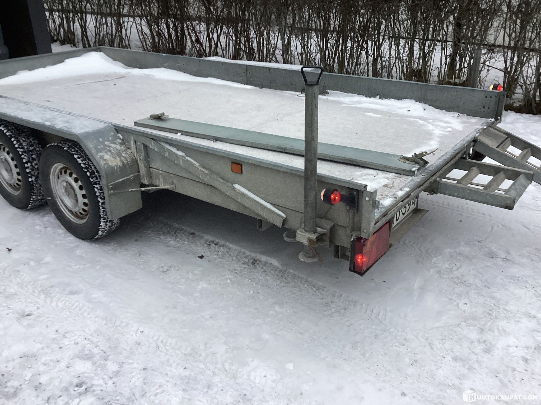 Kuvien mukainen peräkärry kaupan. Ei tiedossa olevia vikoja, ja leimaa on voimassa vuoden loppuun asti. Kärry on sinkitty, erittäin vahvaa tekoa ja varustettu rampeilla, jotka liukuvat kätevästi lavan sisään.