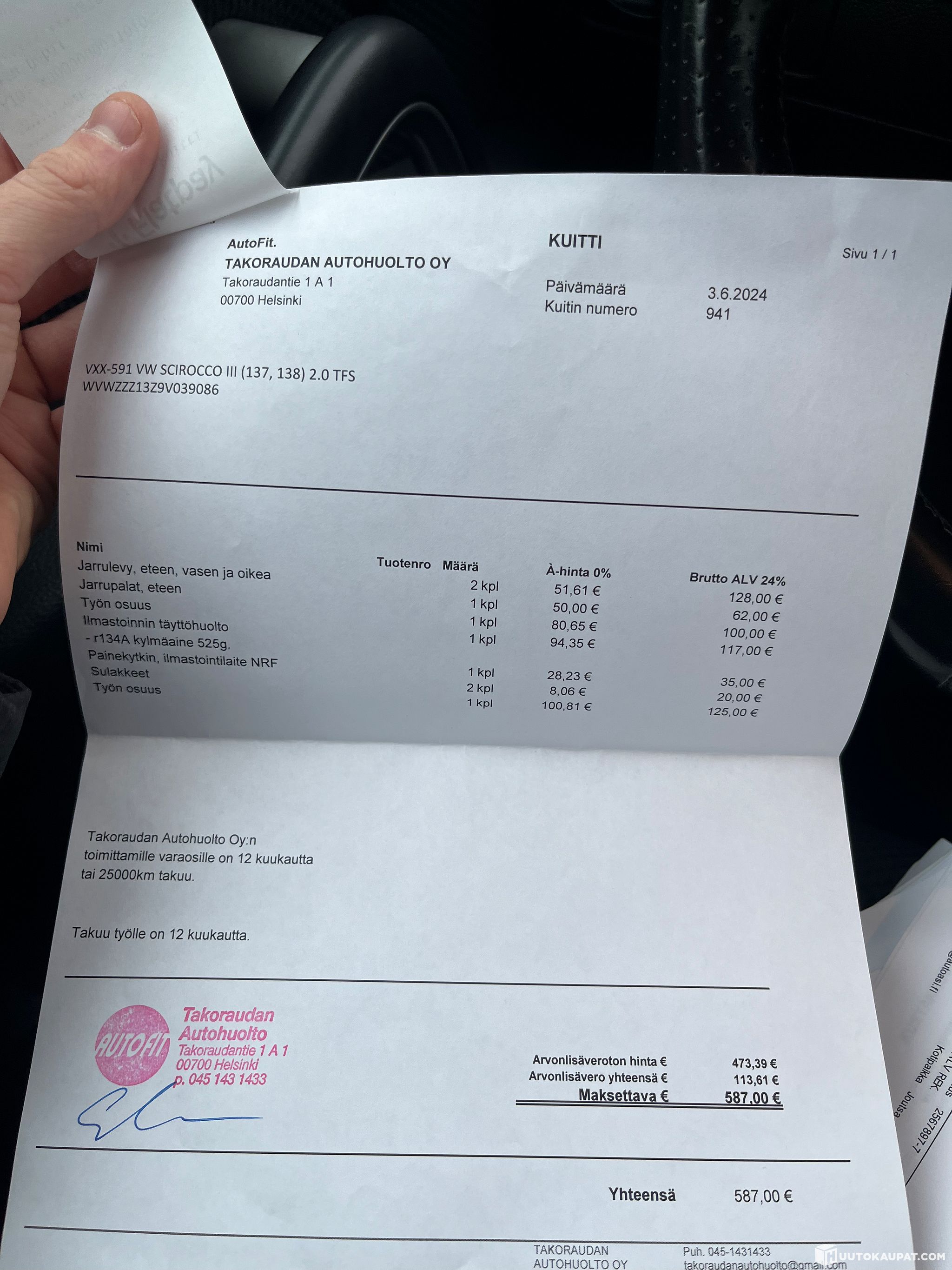 Autossa on fiksu huoltohistoria, huollot löytyy kuvista!