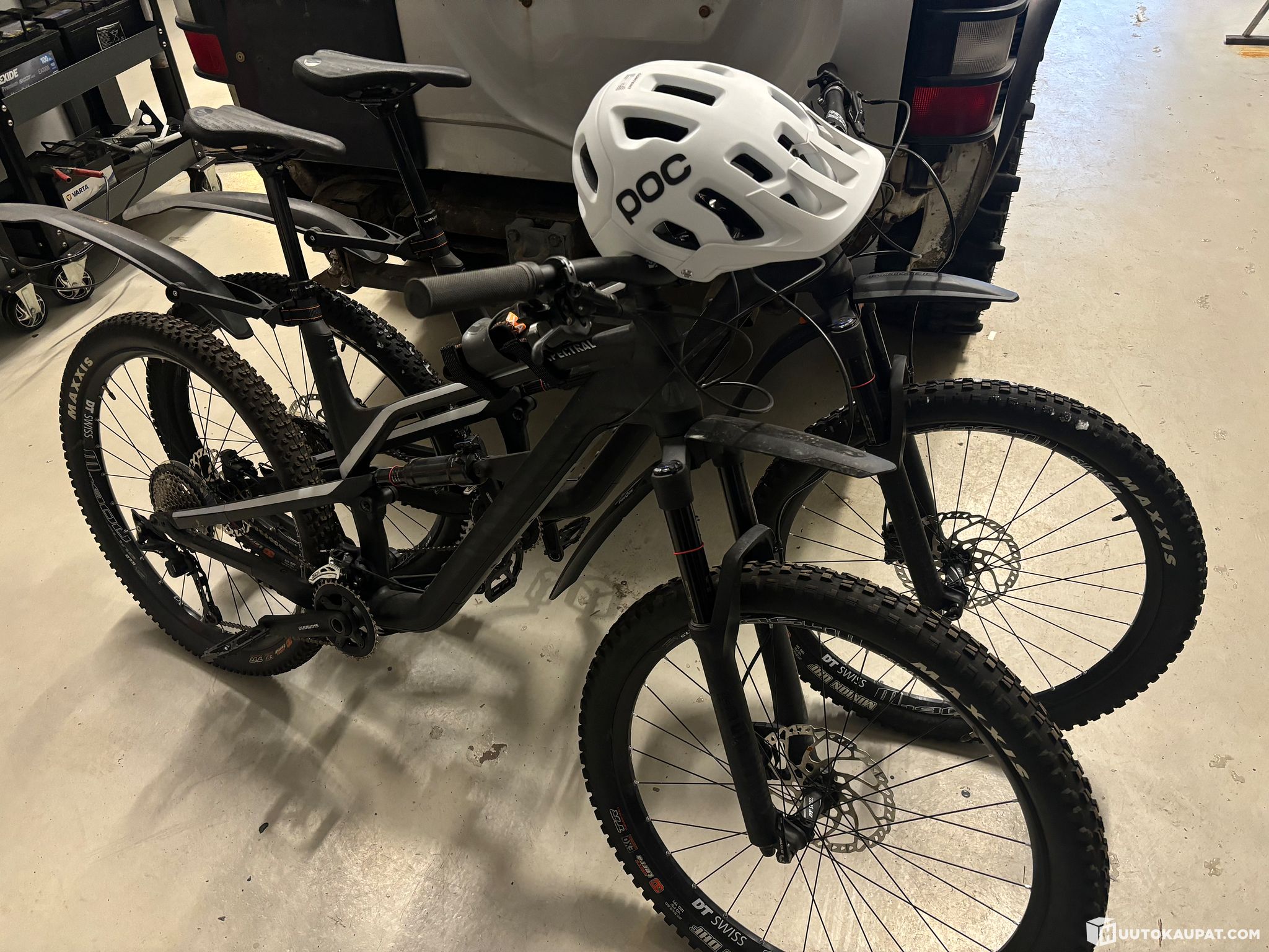 Pyörien mukaan sisältyy kypärä (POC tectal) ja reppu (DAKINE heli pro 20) sekä pyörän lukko joka kulkee repussa tai pyörän rungossa.