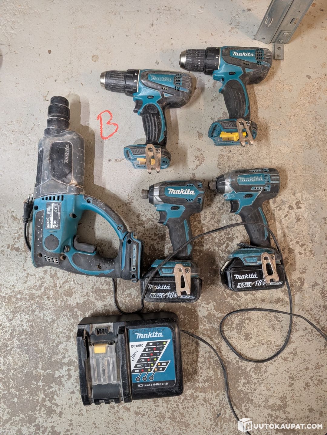 Kuvan mukaiset akkukoneet ja akut.