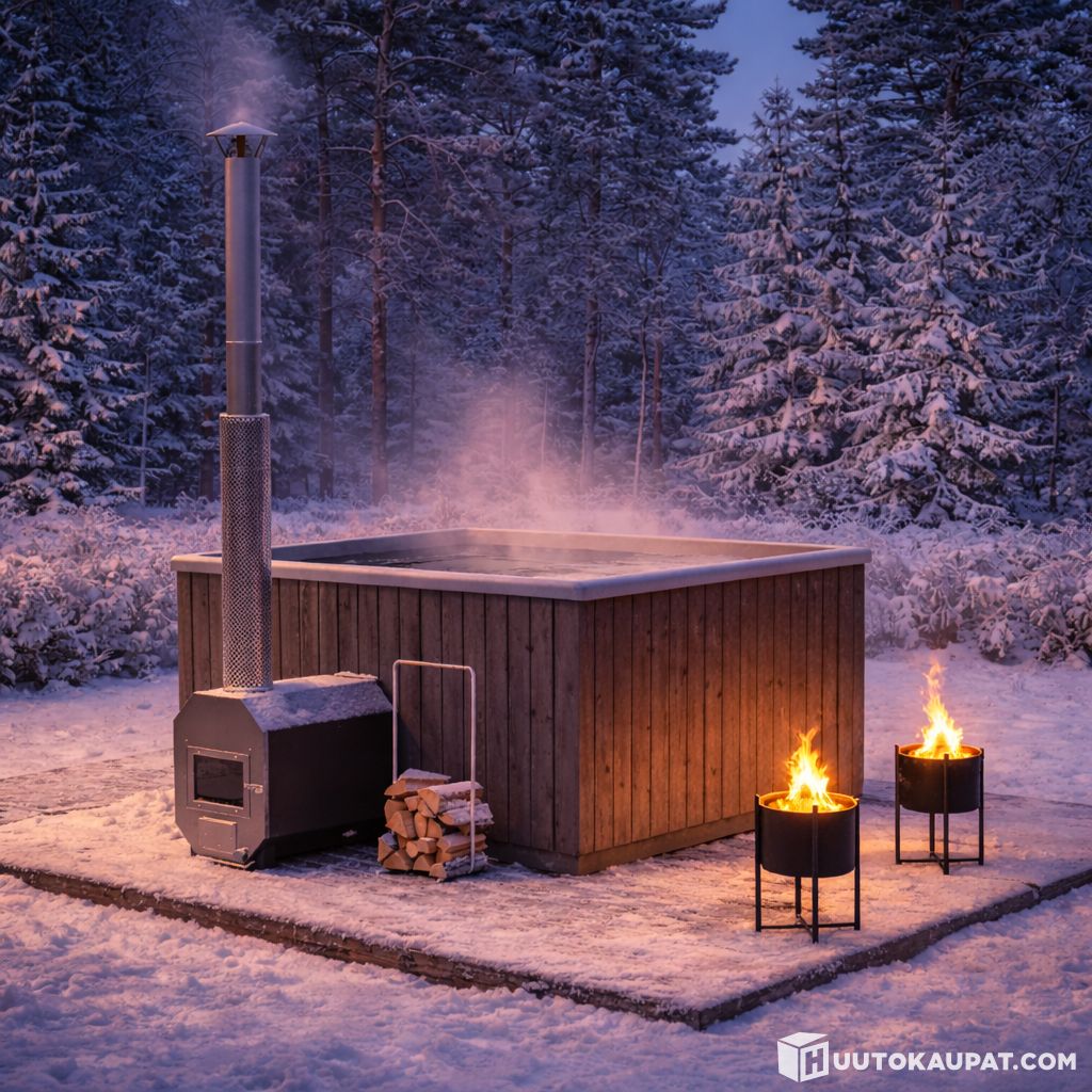 CUPE STEP-IN HOT TUB toimitetaan valmiiksi kasattuna. Kiinnität vain kaminan läpivientiletkuihin ja asennat piipun paikoilleen, jonka jälkeen kylpytynnyri on käyttövalmis. HETI VARASTOSTA! NOPEA TOIMITUS! Tai valitse sopiva toimitusajankohta!