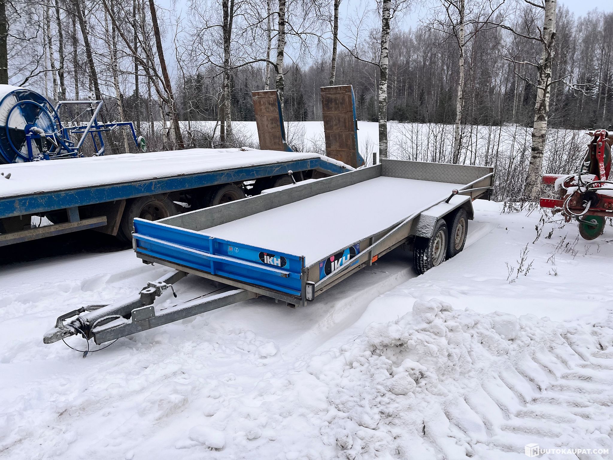 Perävaunua käytetty kahden ruohonleikkurin kuljettamiseen