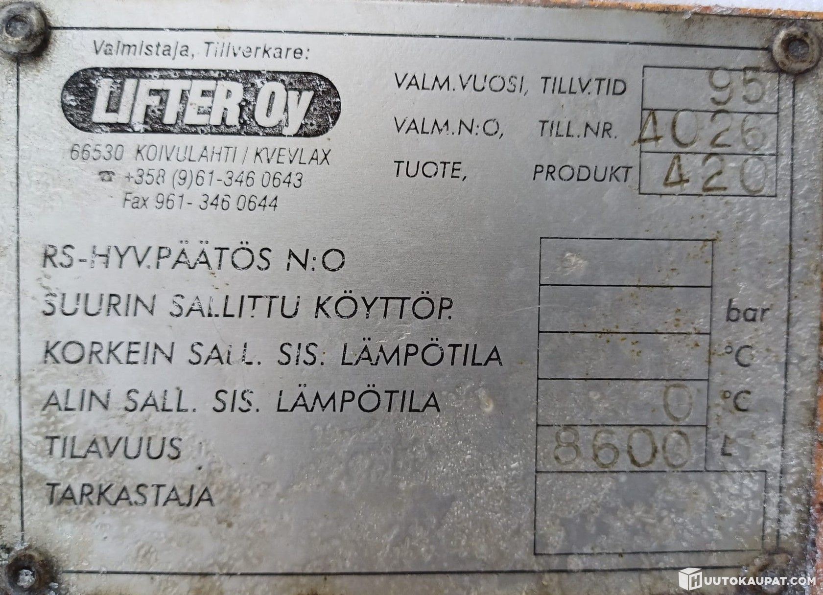 Tilavuus 8600 litraa.